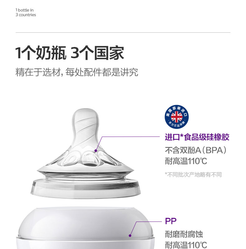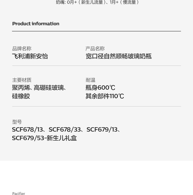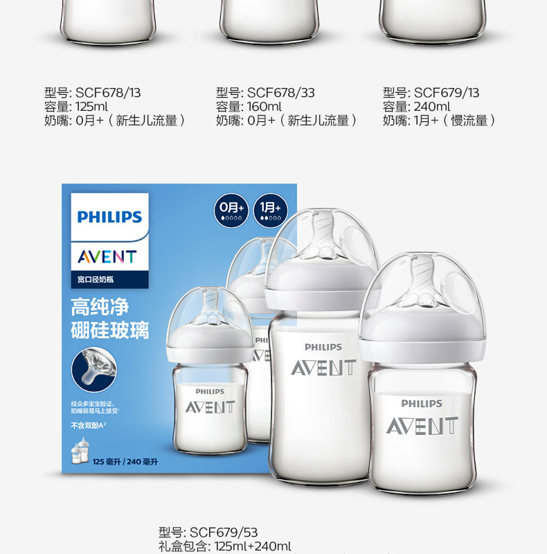 新安怡(AVENT)飞利浦新安怡 玻璃奶瓶 奶瓶套装宽口径 125ml+240mlSCF679/53(单位:套) 白色