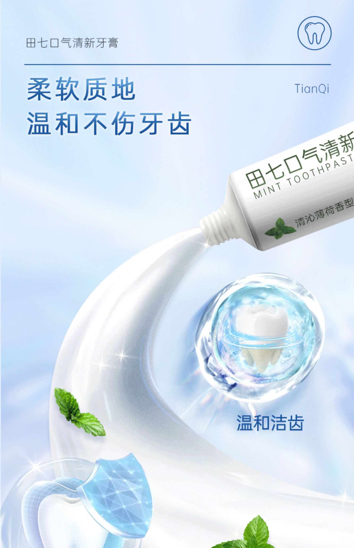 田七口气清新牙膏120g*3(薄荷)单位:组 白色