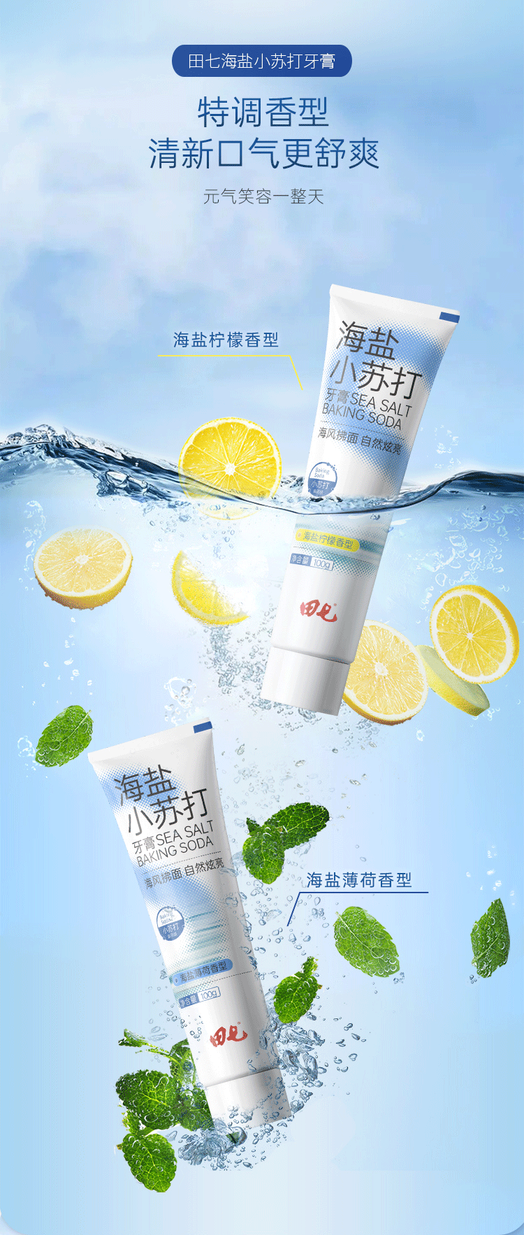 田七海盐小苏打牙膏海盐柠檬100g单位:支 白色