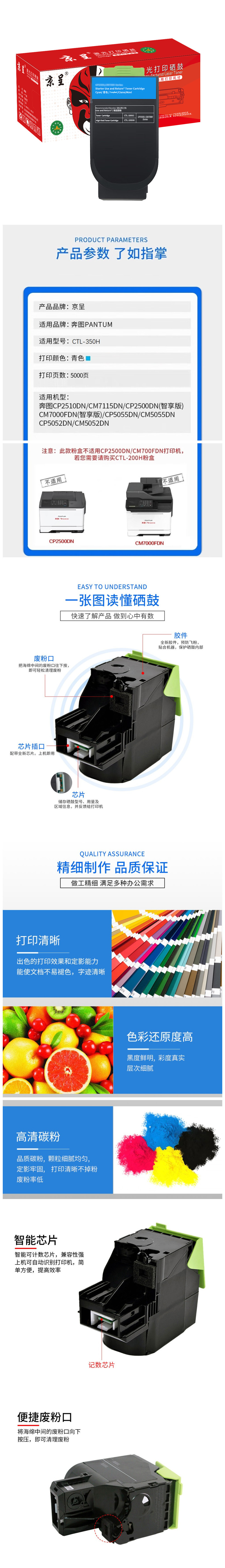 京呈 CTL-350H粉盒 5000页 适用奔图CP2500DN CM7000FDN(智享版)CM5055dn 计价单位:支 青色