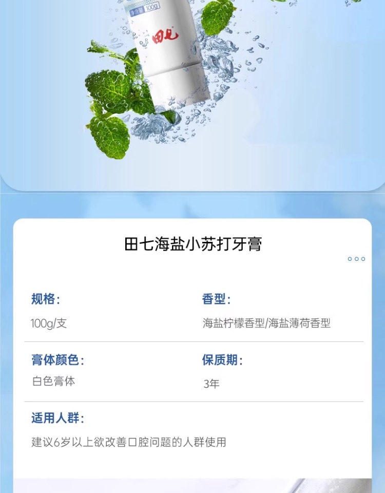 田七小苏打牙膏海盐柠檬100g+海盐薄荷100g 单位:组 蓝色