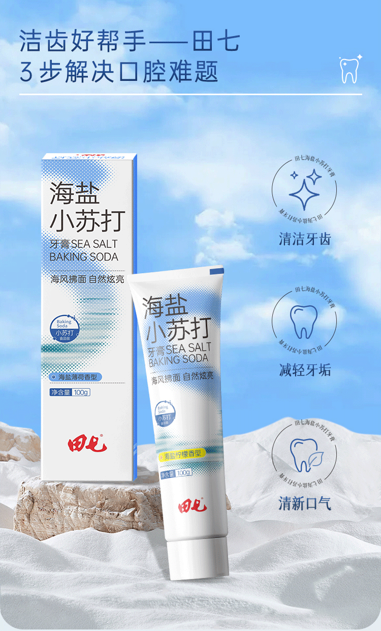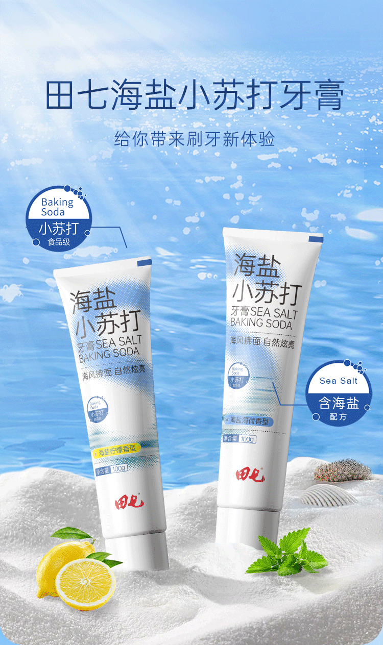 田七海盐小苏打牙膏海盐薄荷100g *2 单位:组 蓝色