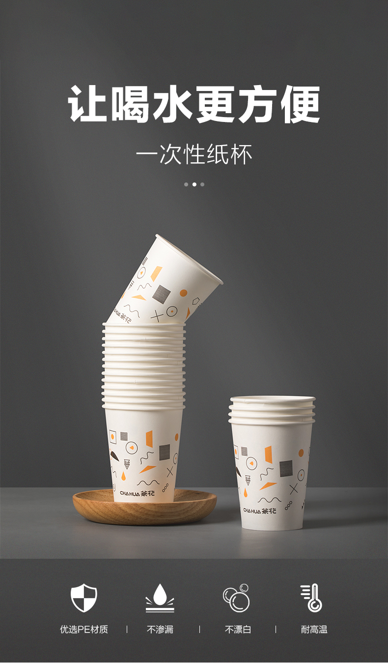 茶花纸杯9.0盎司一次性纸杯225ml(50只)3102-A(单位:只) 白色