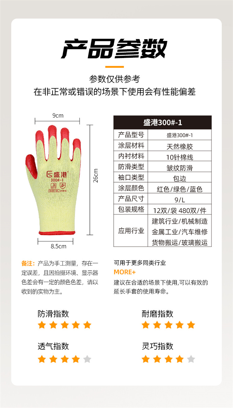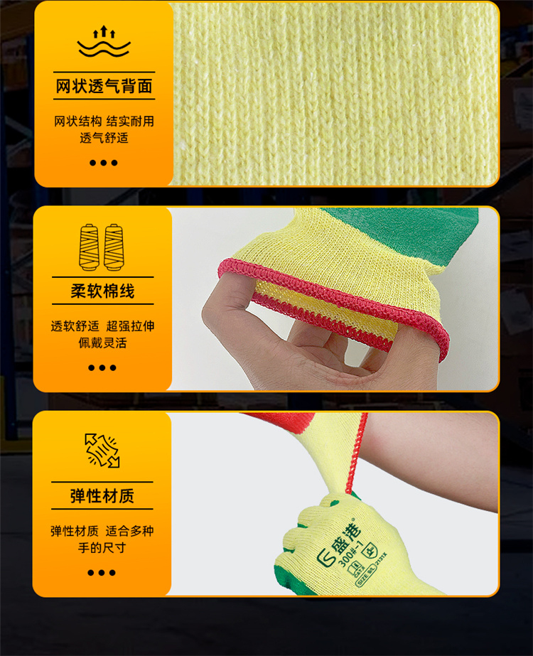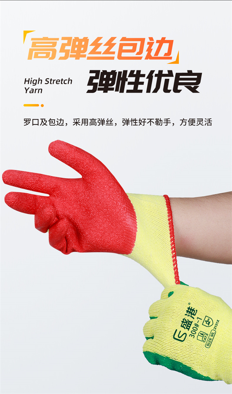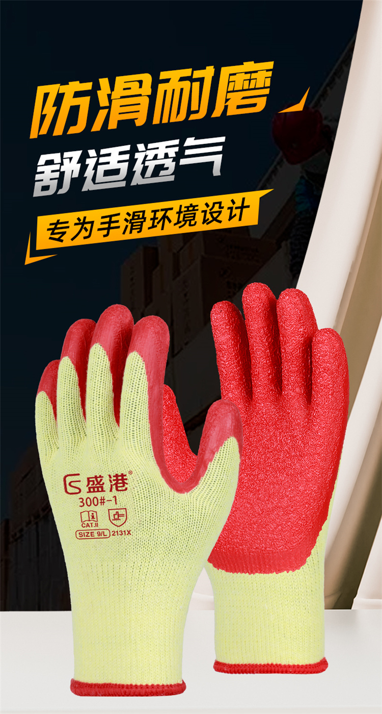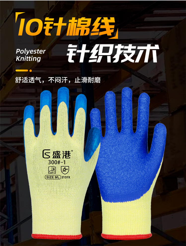 盛港(SHENGGANG) 300-1# 12双 黄纱皱纹挂胶劳保手套 宝石蓝(单位:包)