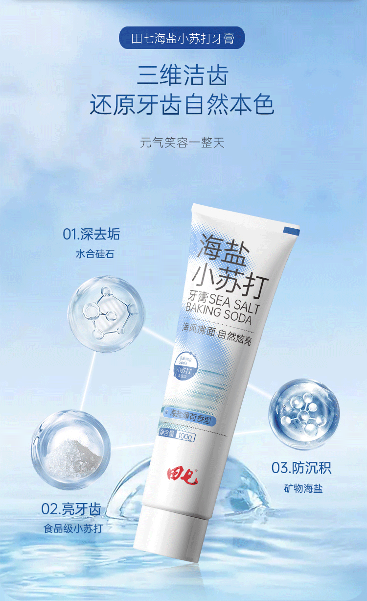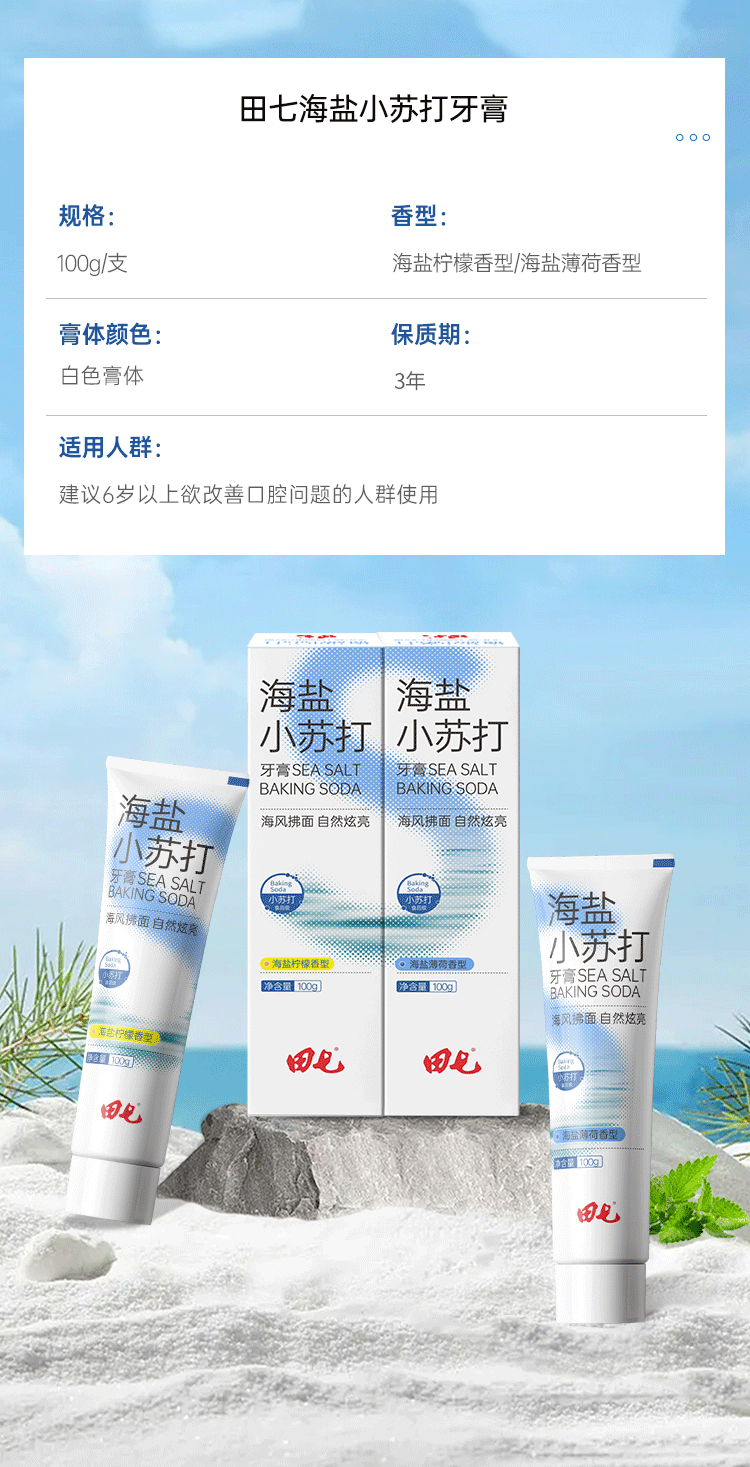 田七牙膏海盐柠檬100g*3+海盐薄荷100g*3 单位:组 蓝色