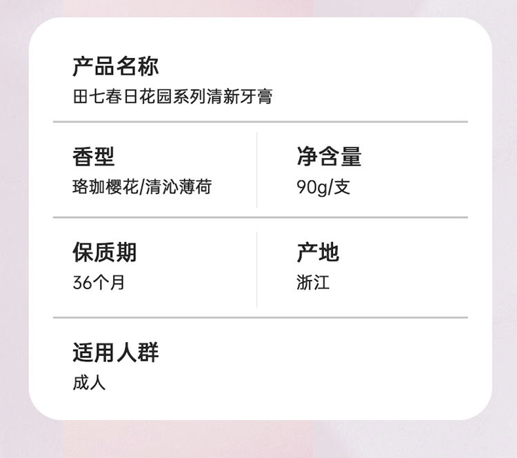 田七春日花园牙膏樱花90g 单位:支 粉色