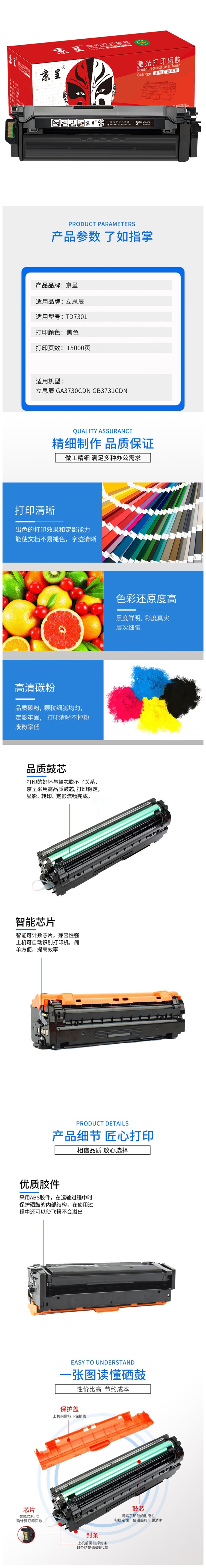 京呈 TD7301硒鼓15000页 适用立思辰GA3730CDN GB3731CDN(单位:支) 黑色