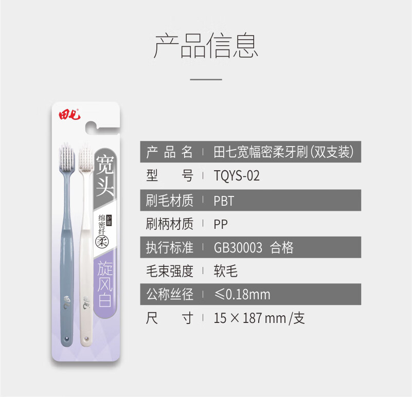 田七宽幅密柔牙刷双支装 单位:支 混色