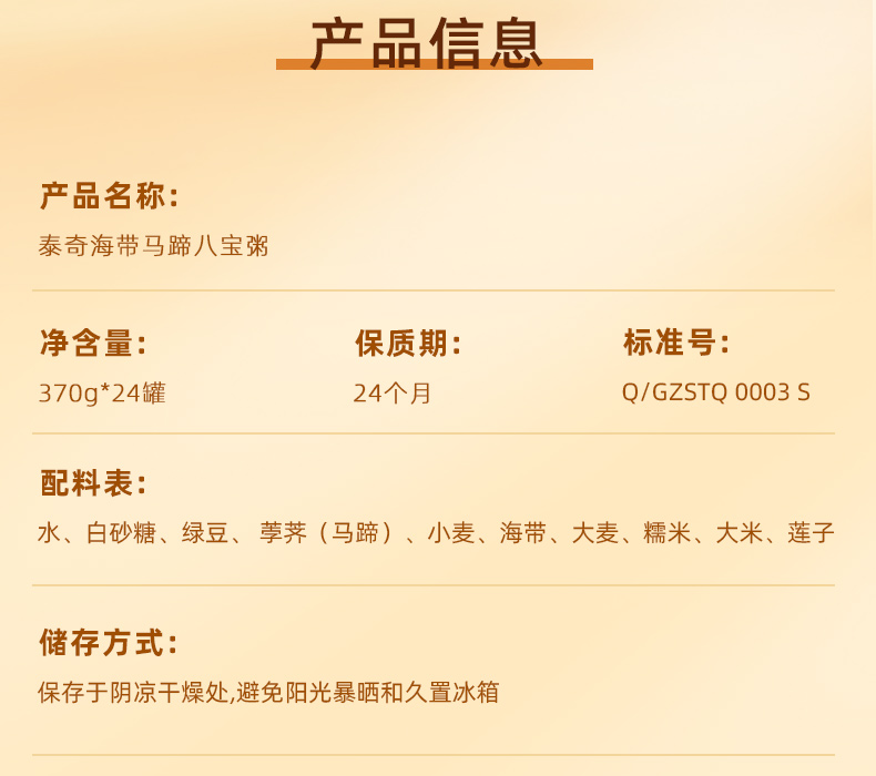泰奇海带马蹄粥370g*24(单位:箱) 香槟黄