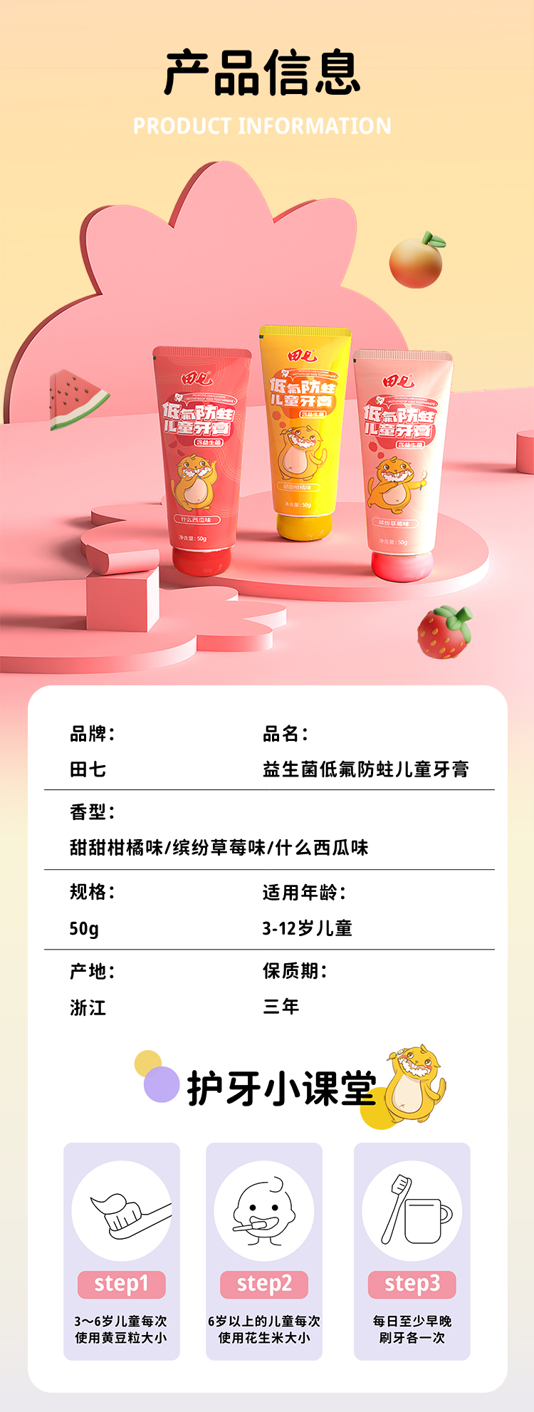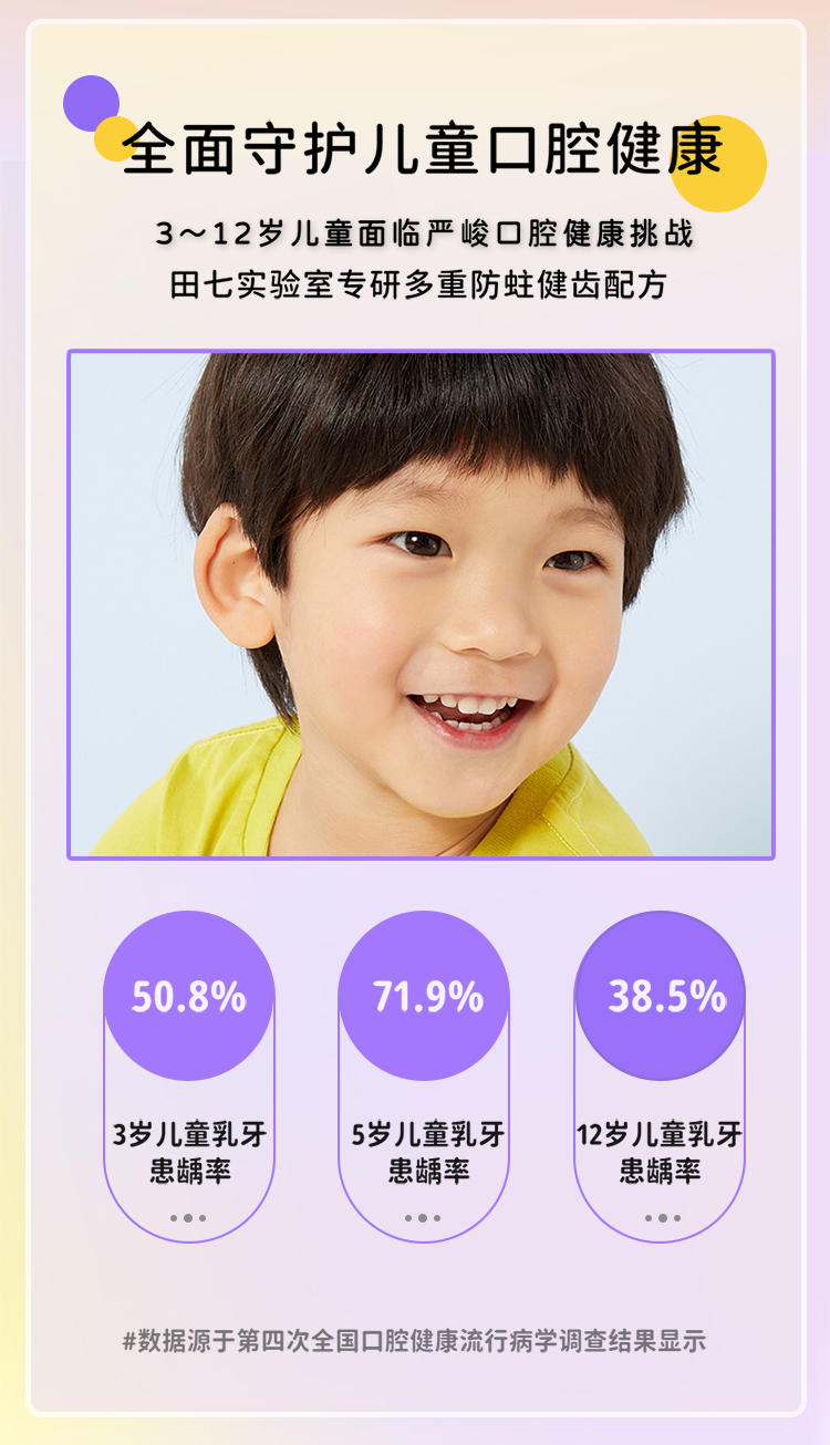 田七儿童牙膏草莓味50g+柑橘味50g单位:组 彩色