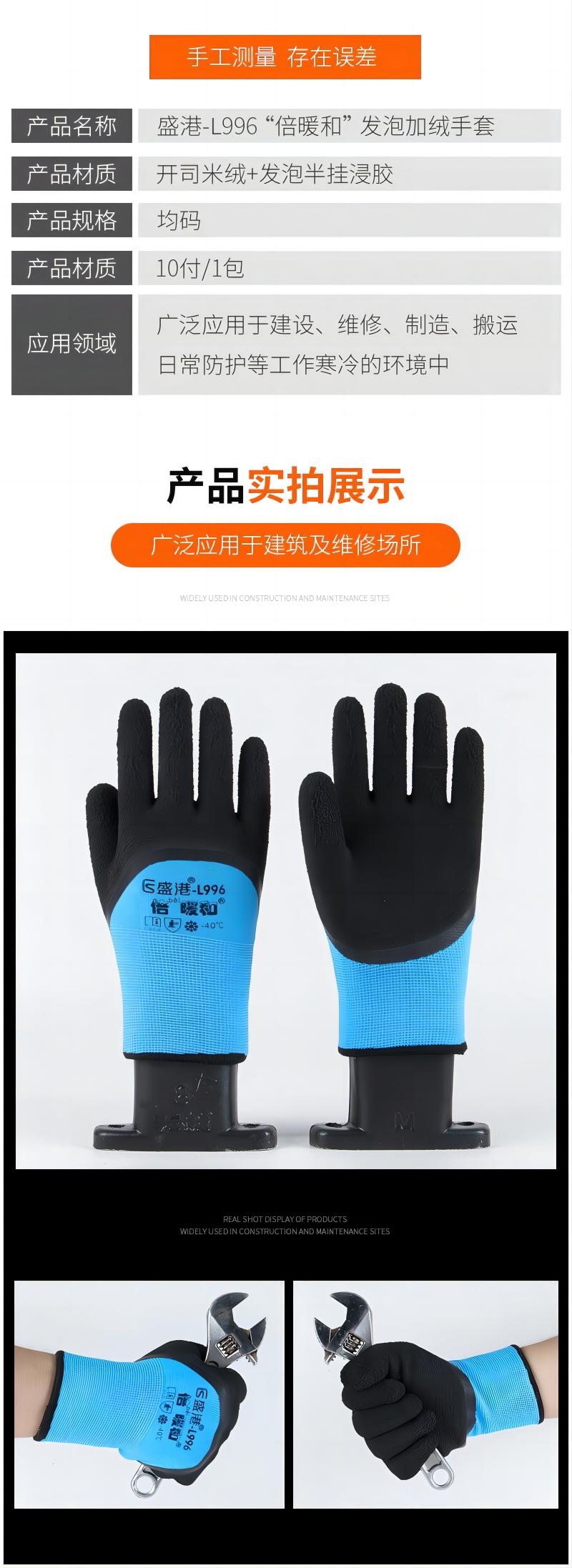 盛港(SHENGGANG) L996 10双 冬季加绒加厚劳保手套 宝石蓝(单位:捆)