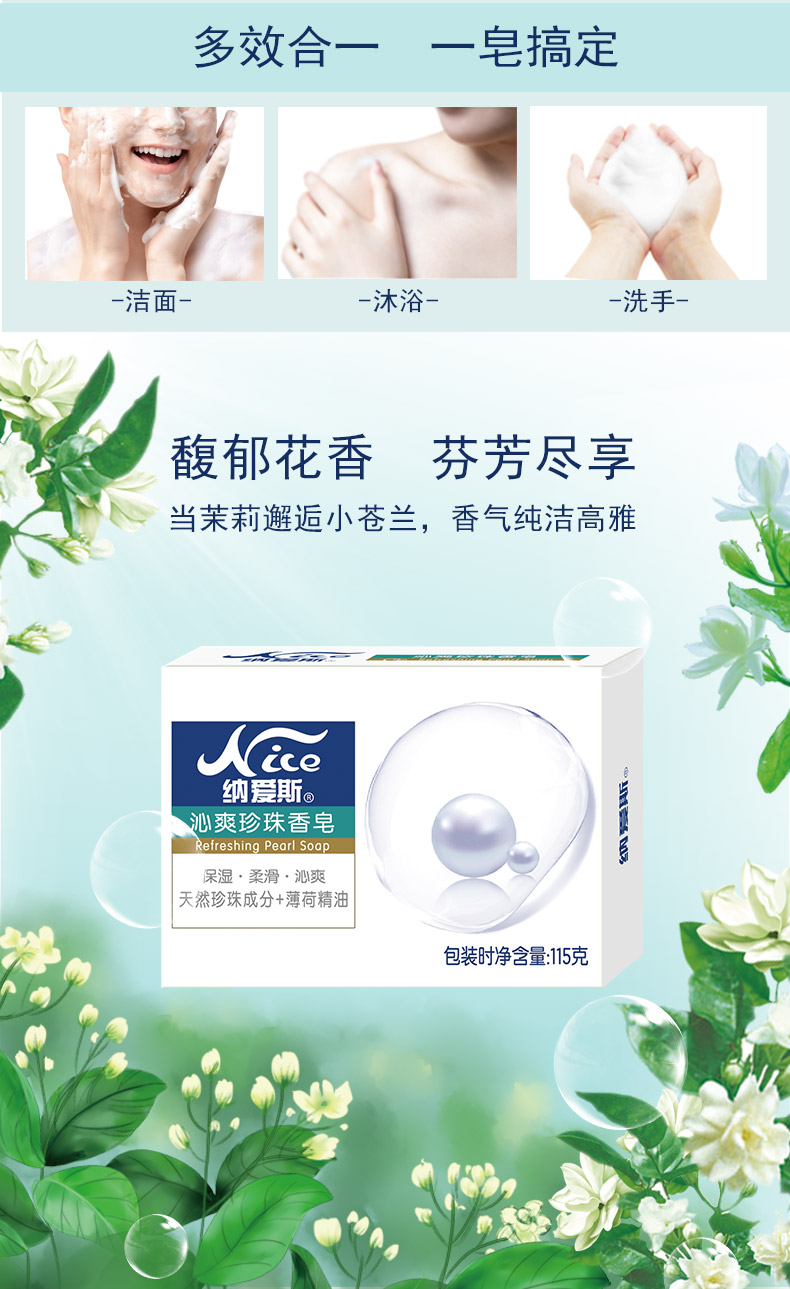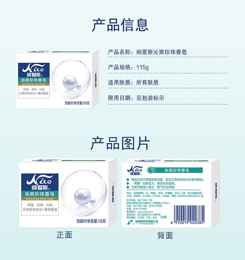 纳爱斯珍珠香皂(沁爽)(新疆、青海、西藏不发货)115g*2块/盒 白色