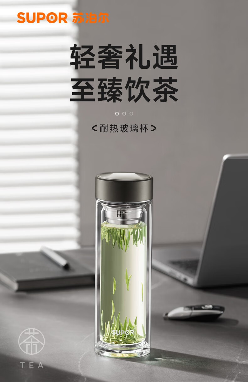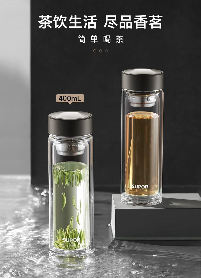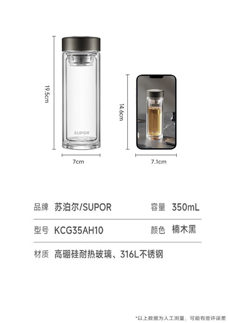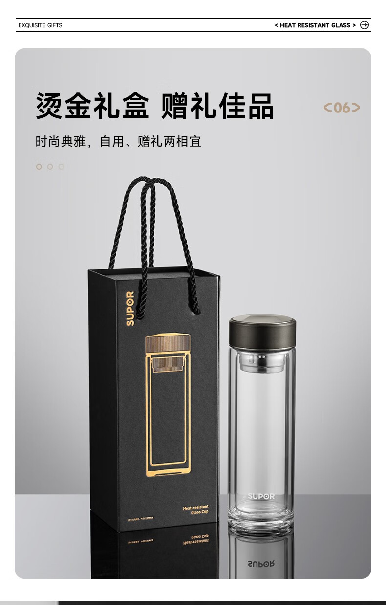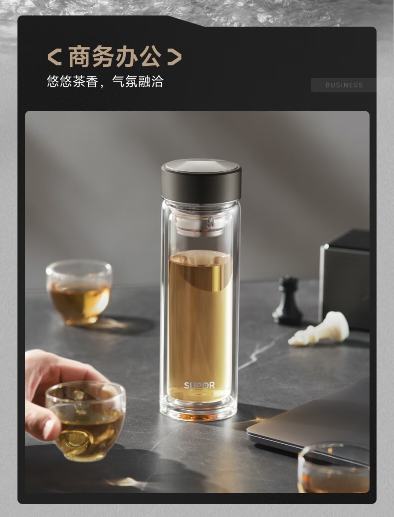 苏泊尔(SUPOR)耐热玻璃杯350mL 楠木黑 KCG35AH10(单位:个) 楠木黑