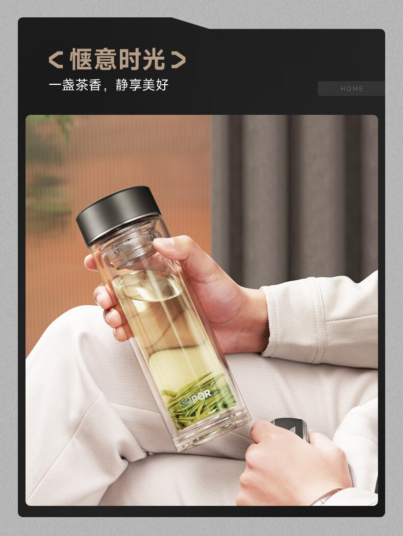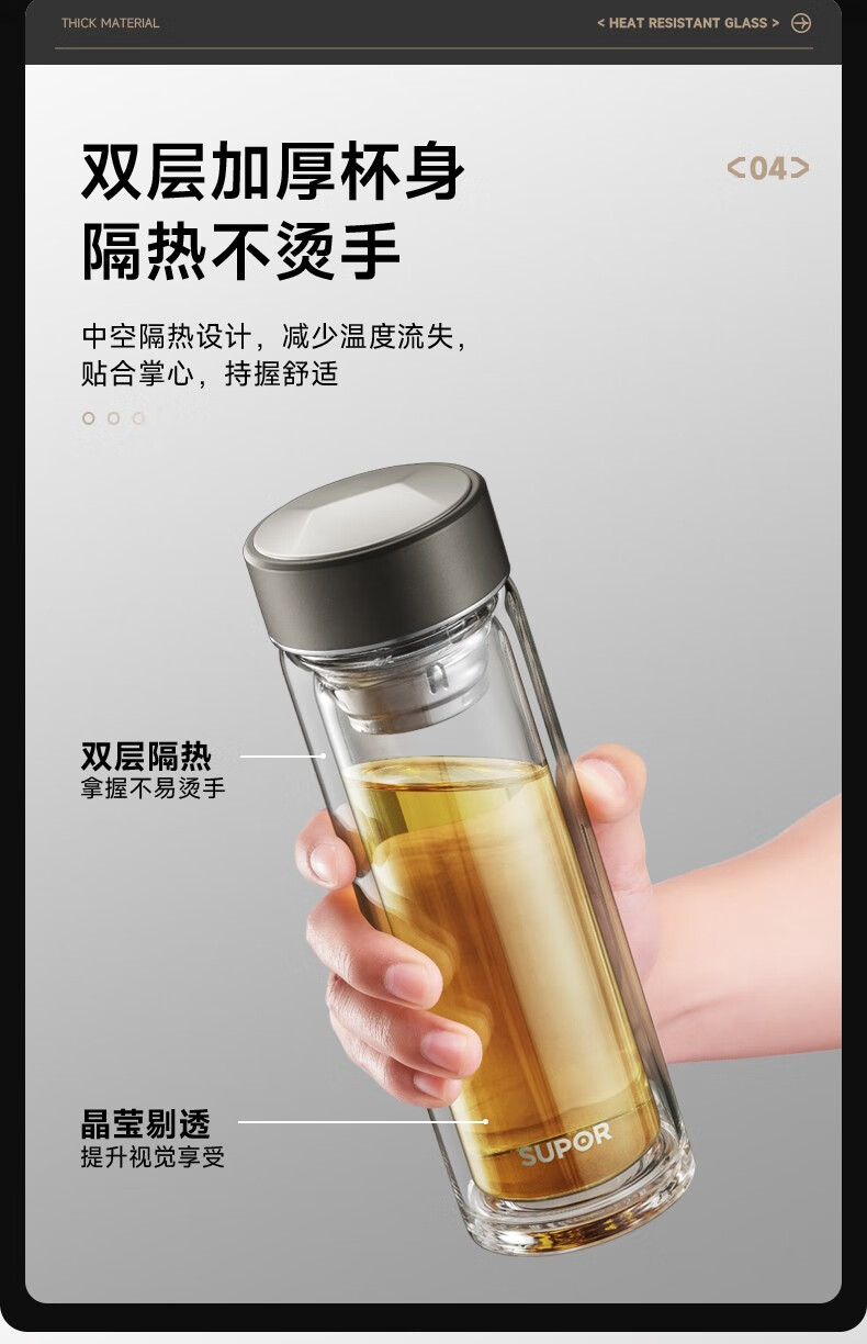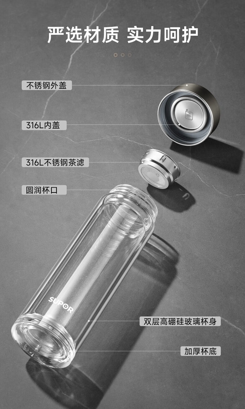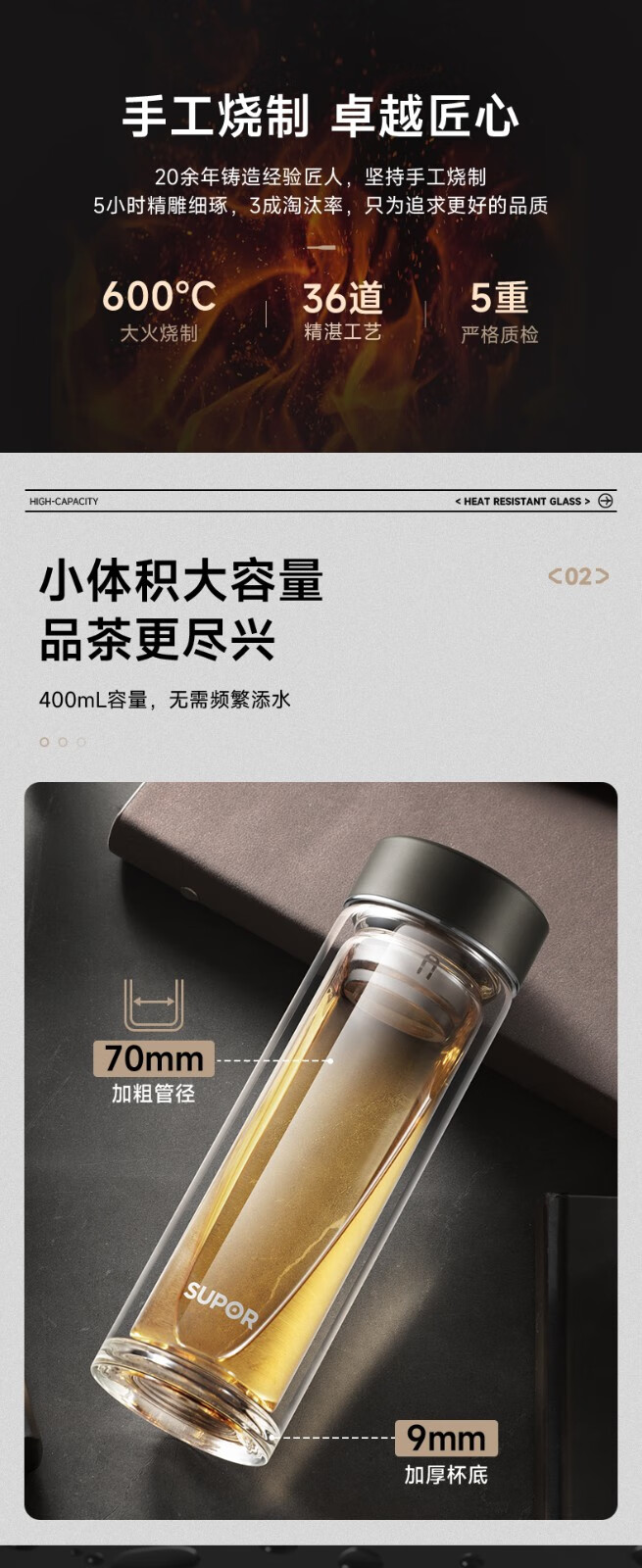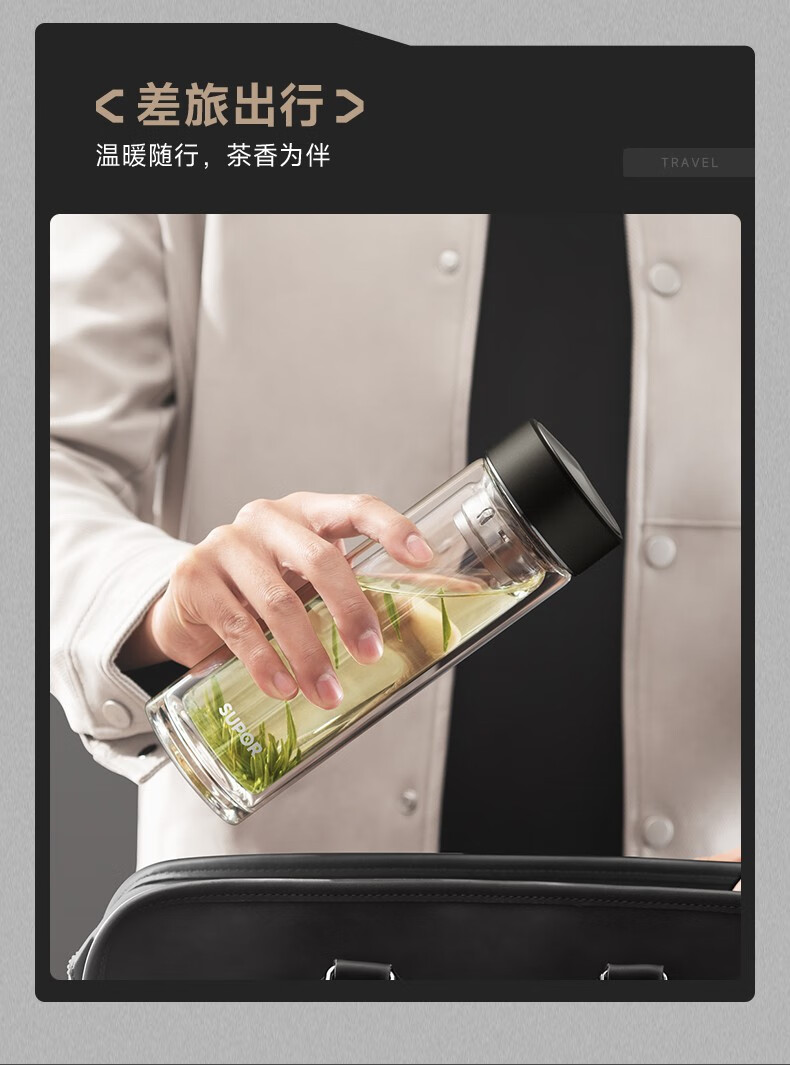 苏泊尔(SUPOR)耐热玻璃杯350mL 楠木黑 KCG35AH10(单位:个) 楠木黑