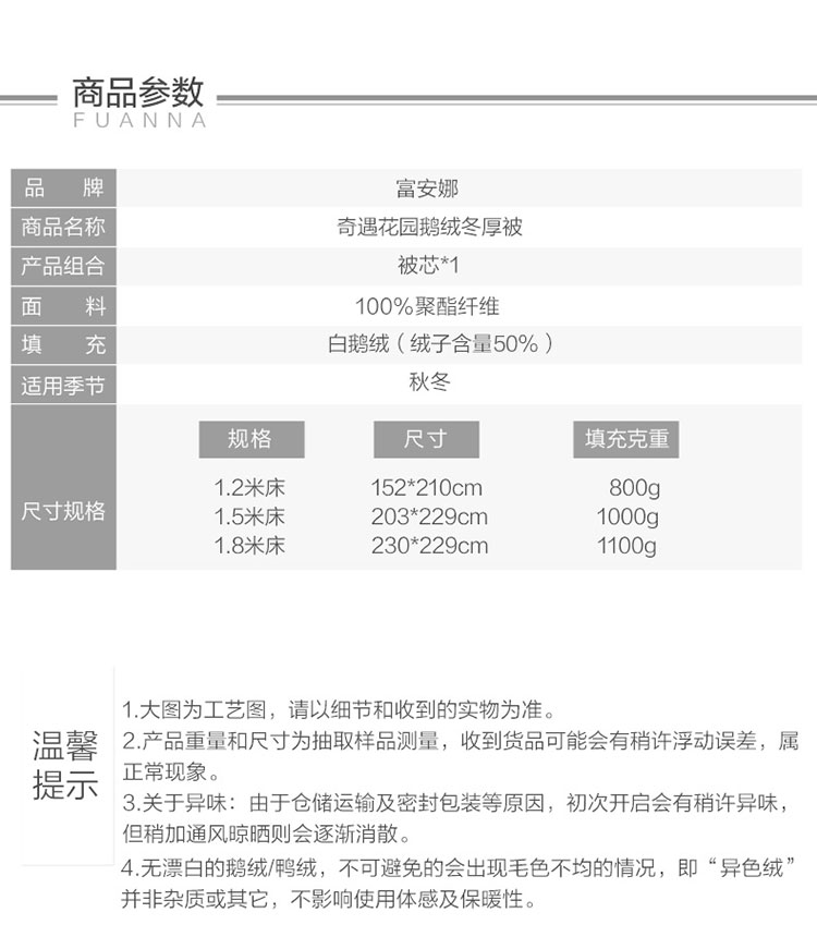富安娜奇遇花园鹅绒冬厚被1100g/ 230*229cm(单位:床) 紫色