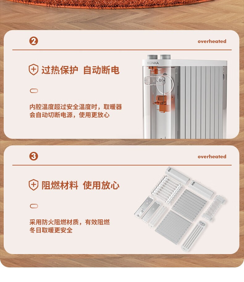 康佳(KONKA)石墨烯电暖器取暖器 烘鞋 倾斜断电(单位:台)KDND-1501-P 白色