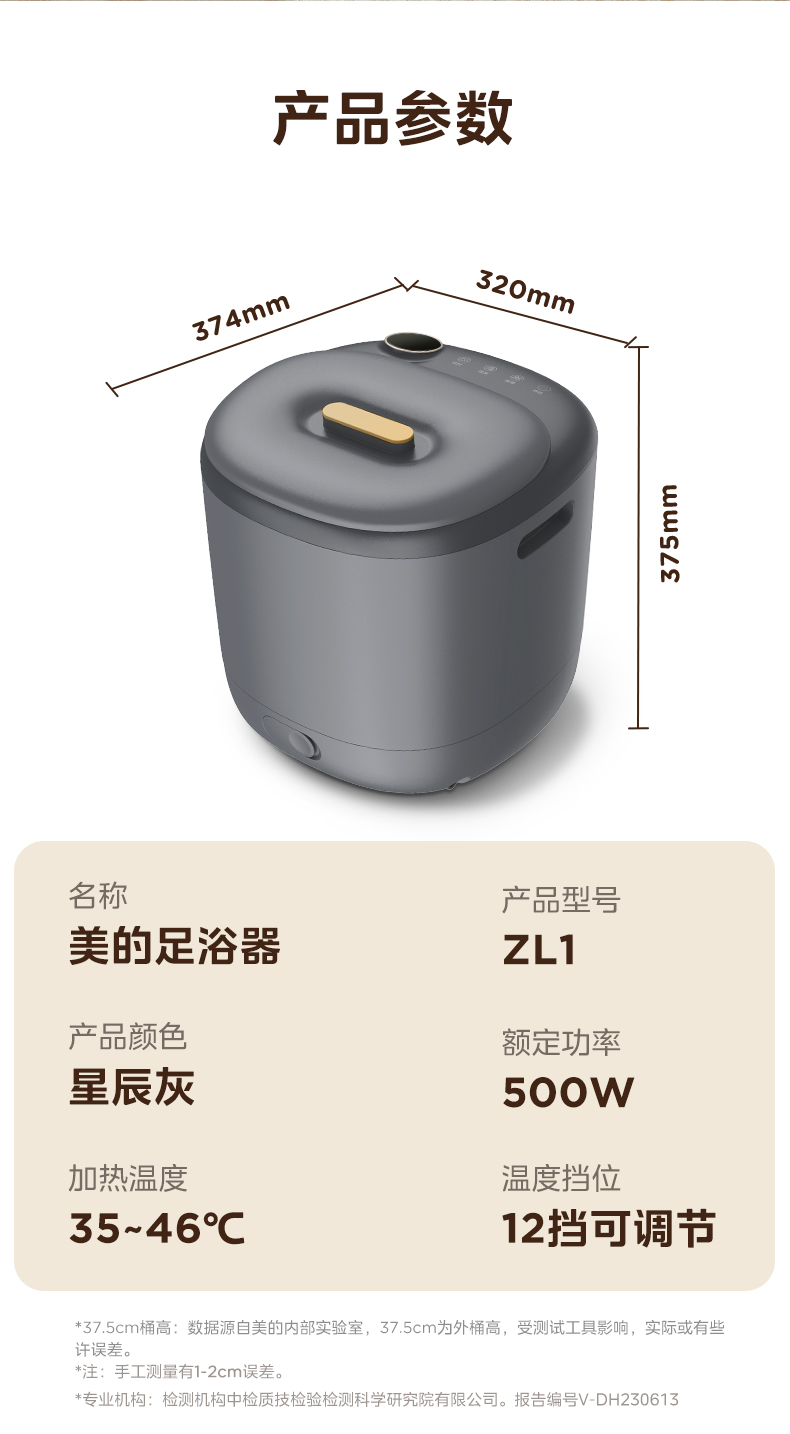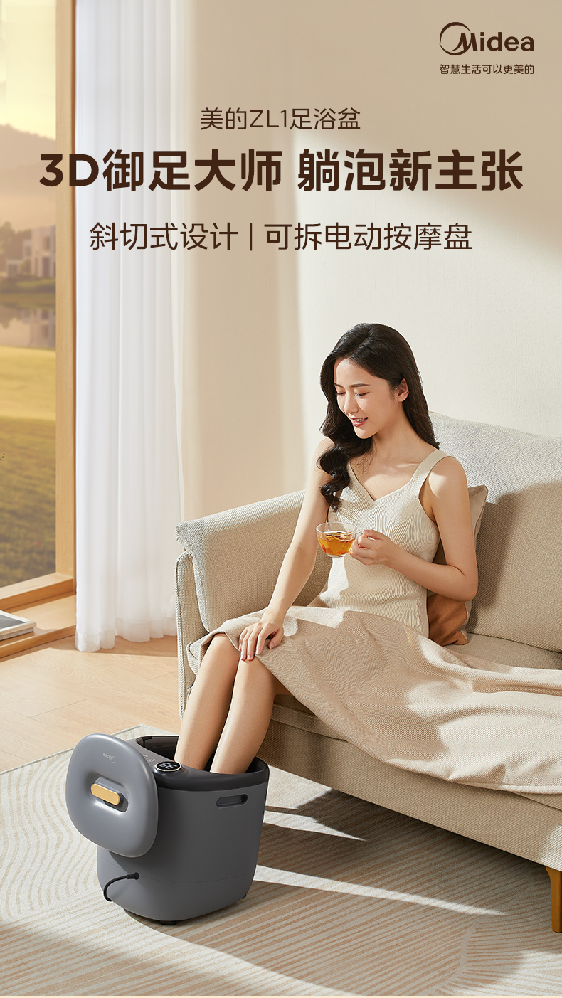 美的(Midea)泡脚桶足浴盆 500W全自动按摩洗脚盆 ZL1(单位:台) 黑色