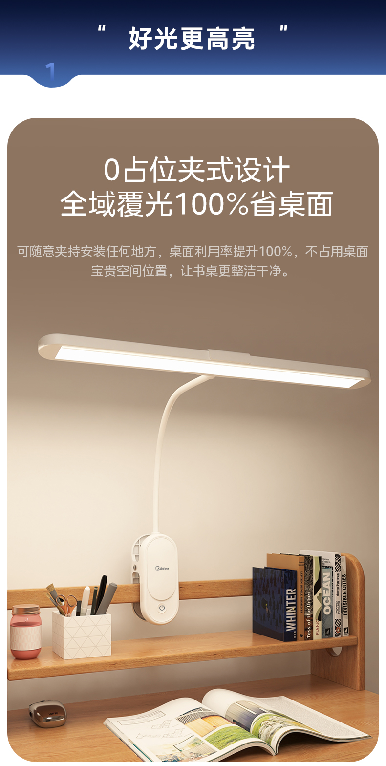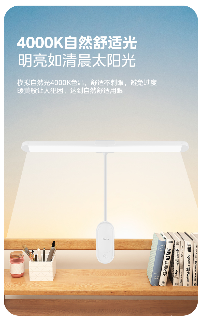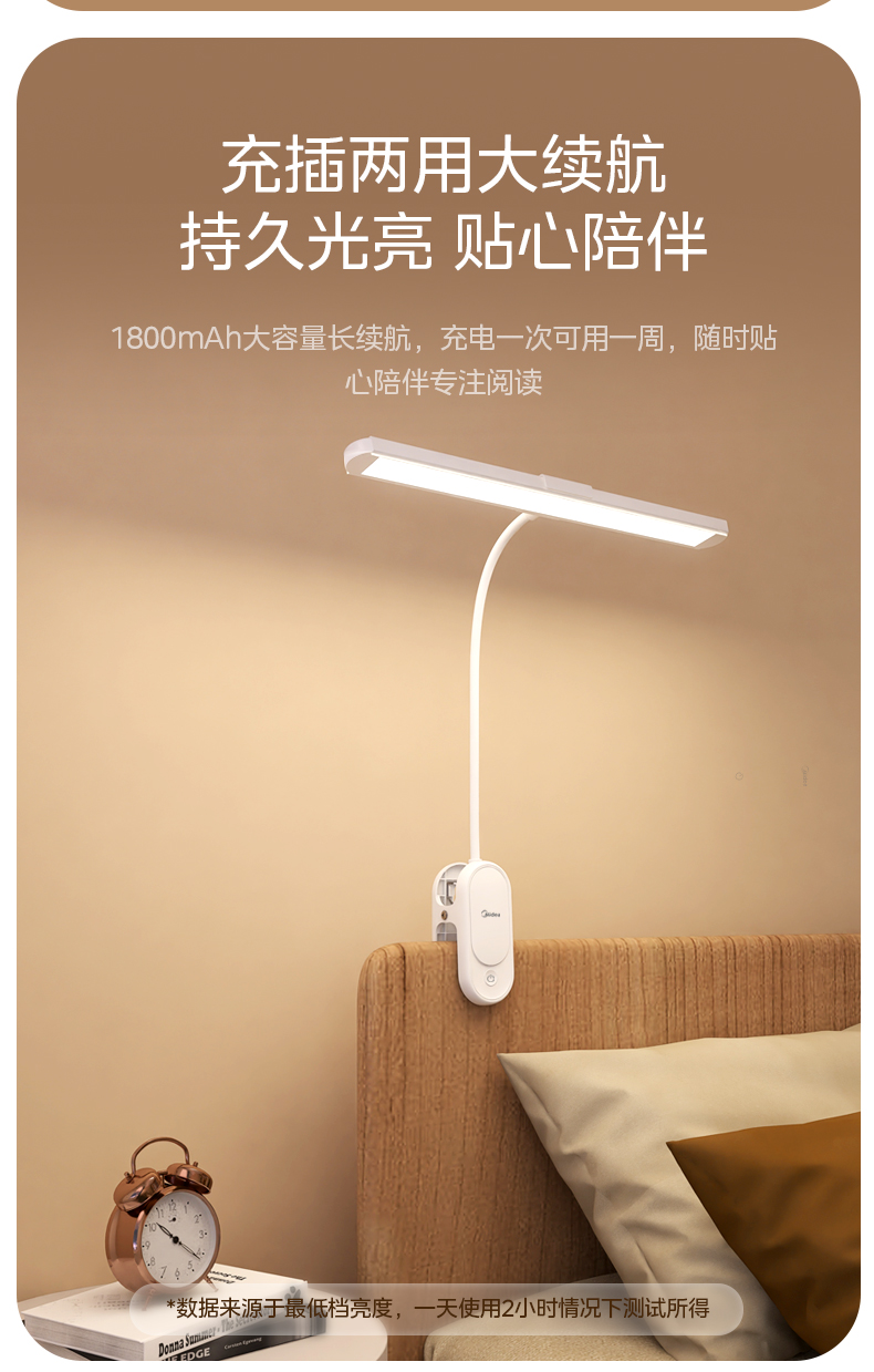 美的(Midea)台灯 1800mAhT型夹子灯 MT-9T3(单位:台) 白色