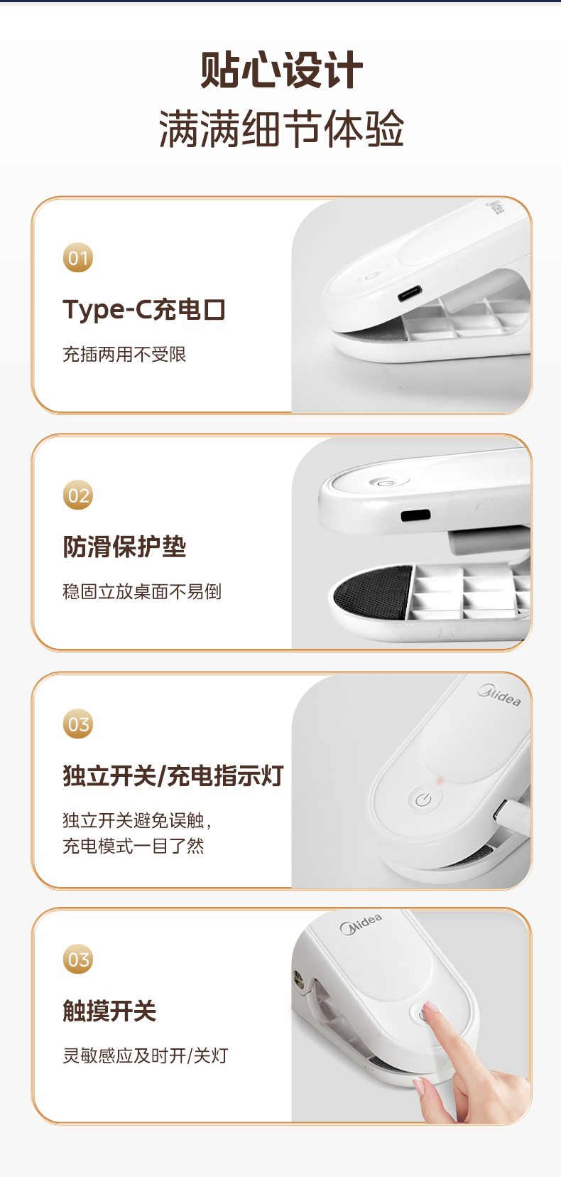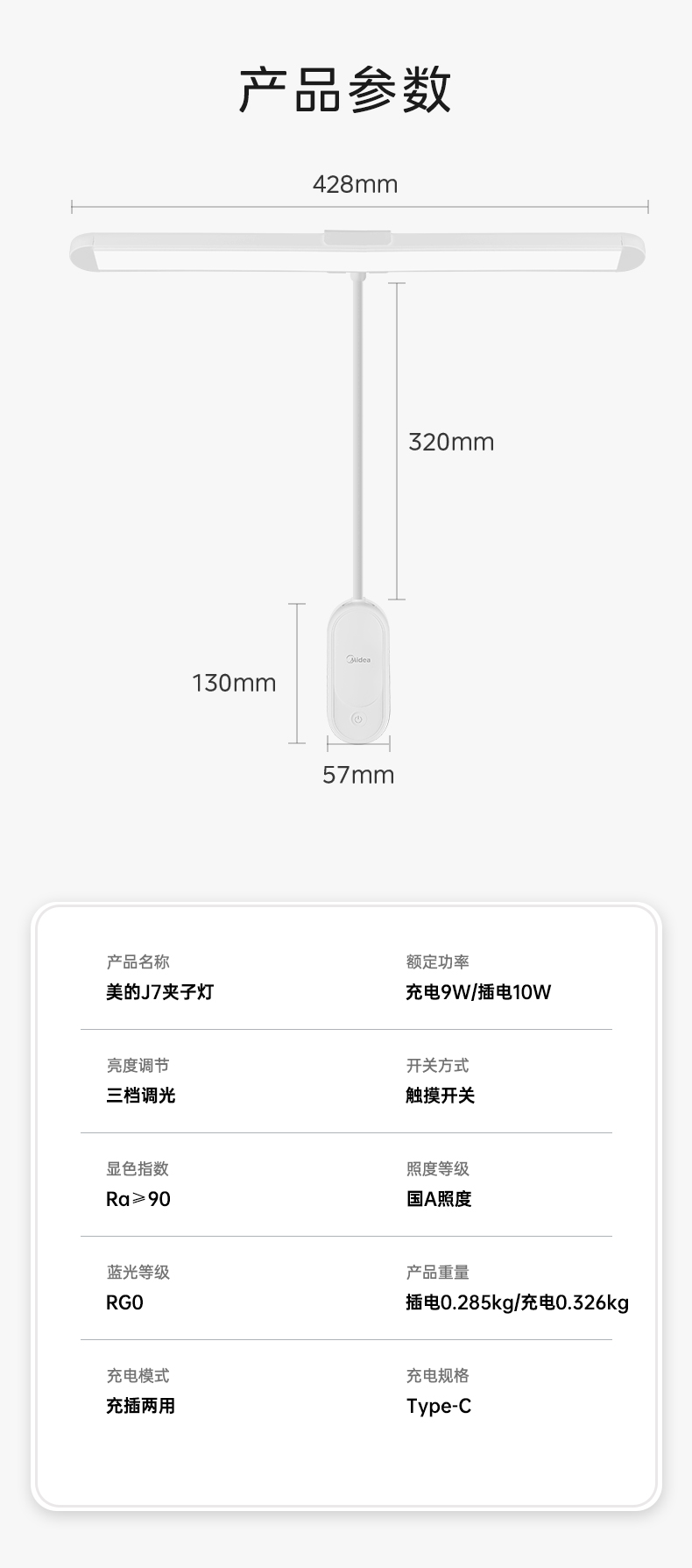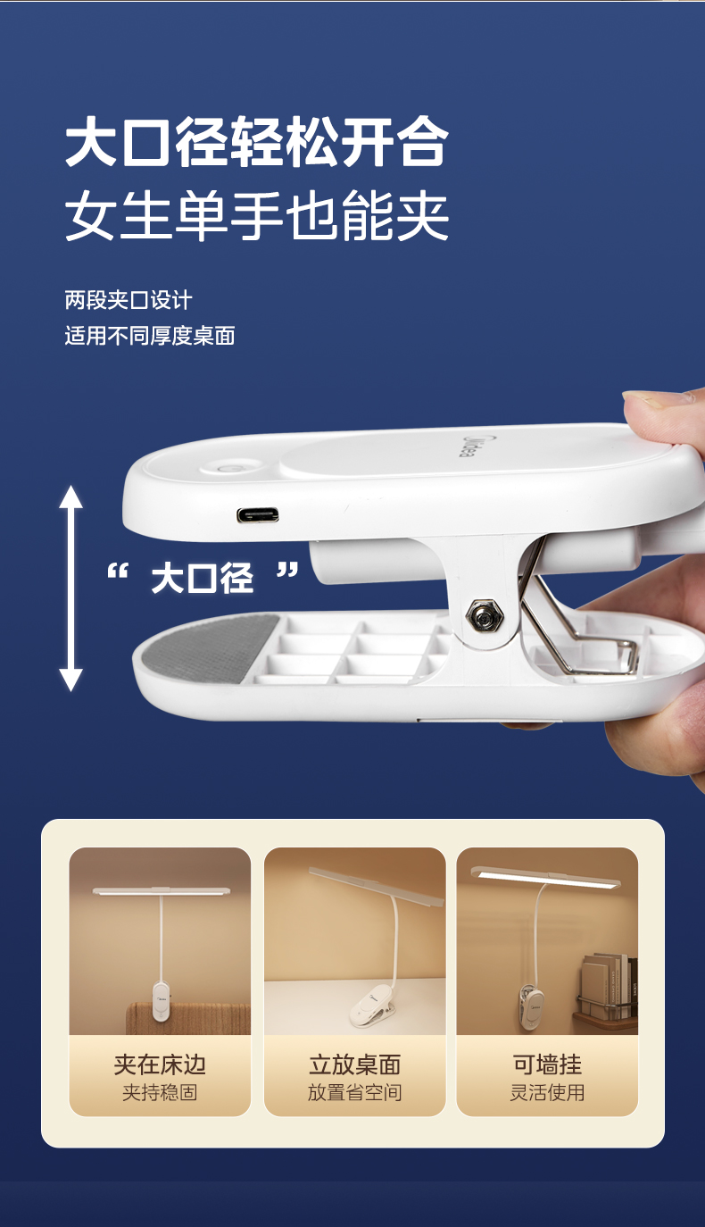 美的(Midea)台灯 1800mAhT型夹子灯 MT-9T3(单位:台) 白色