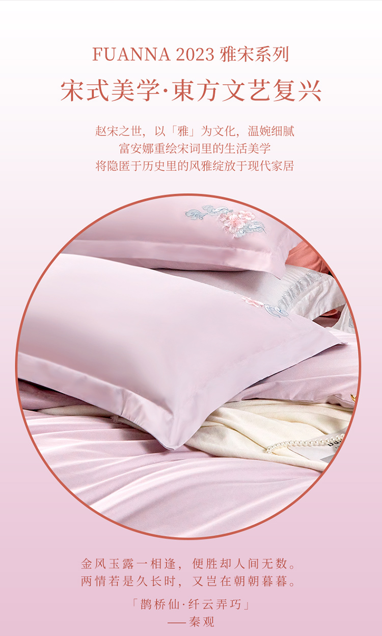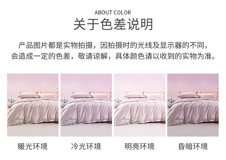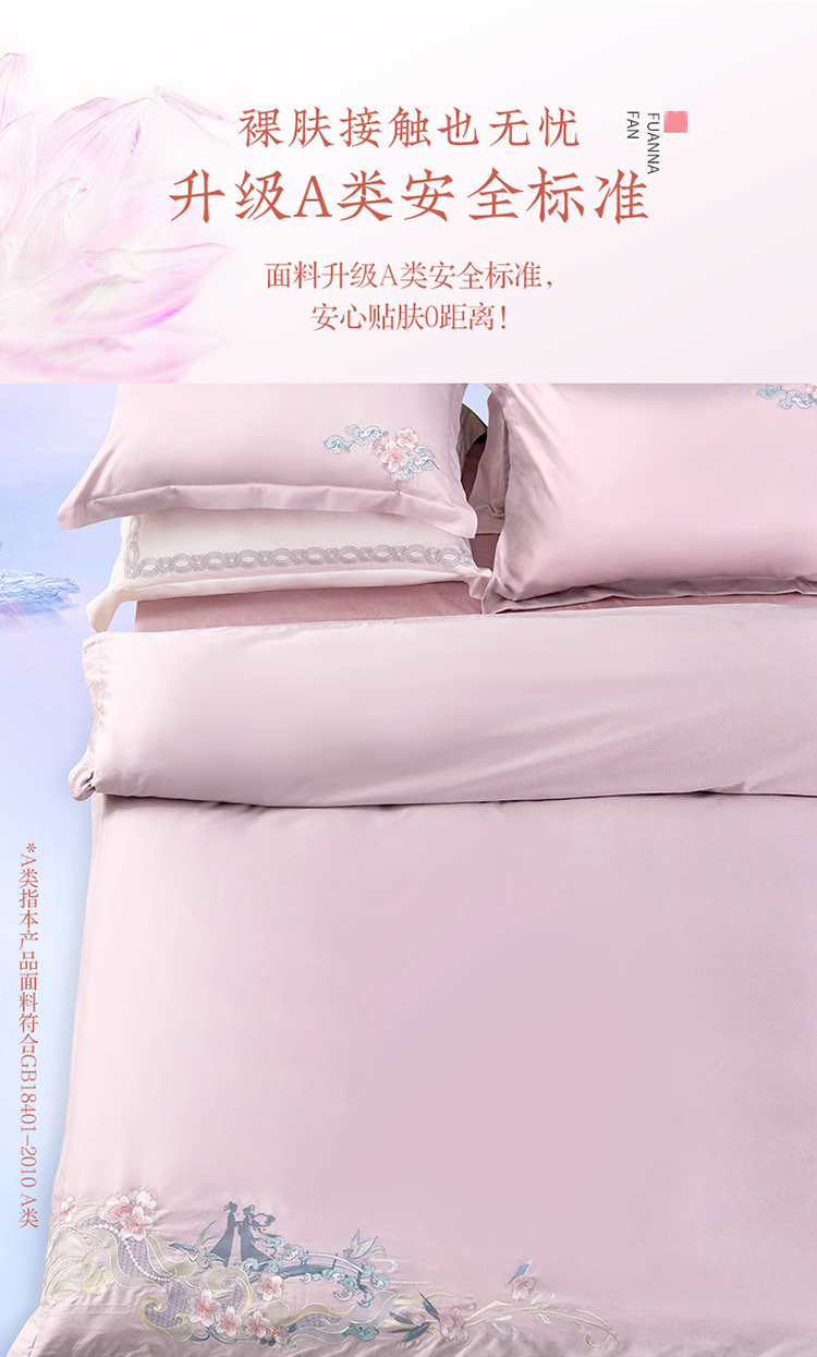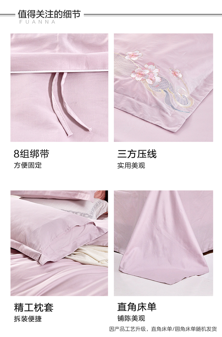 富安娜纯棉四件套100s长绒棉贡缎床单被套全棉A类套件230*229cm 雅宋·鹊桥仙(单位:套) 紫色