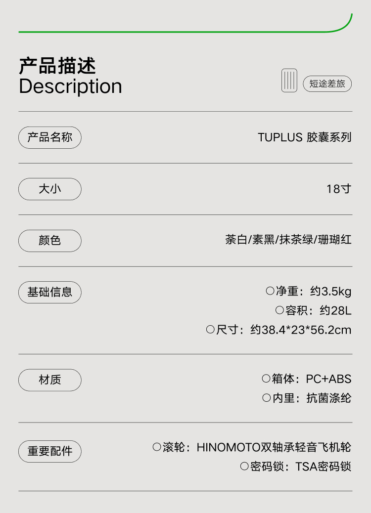 途加TUPLUS胶囊系列(单位:只) 抹茶绿 18寸