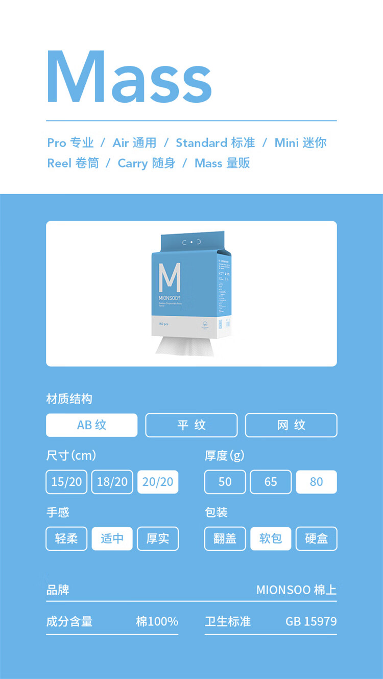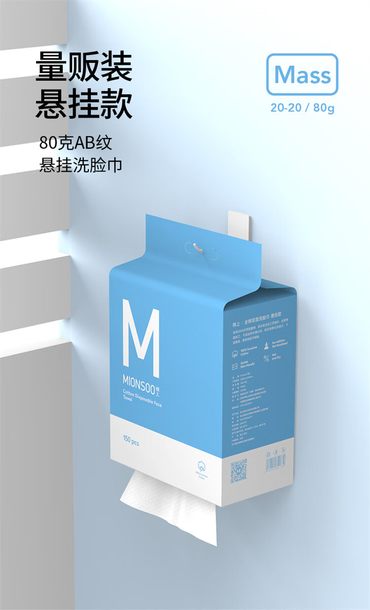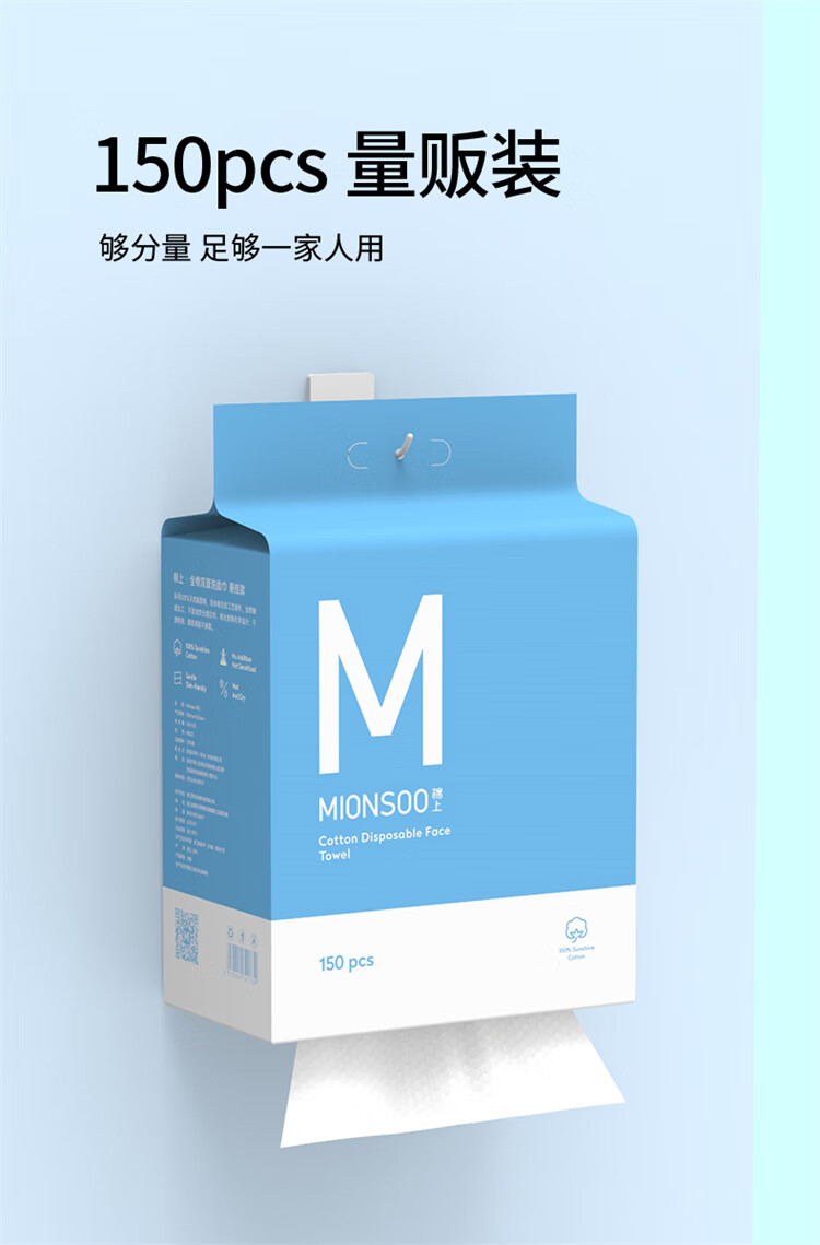 棉上悬挂式一次性棉柔巾抽取式家庭M1025(150抽/提)(单位:提) 蓝色