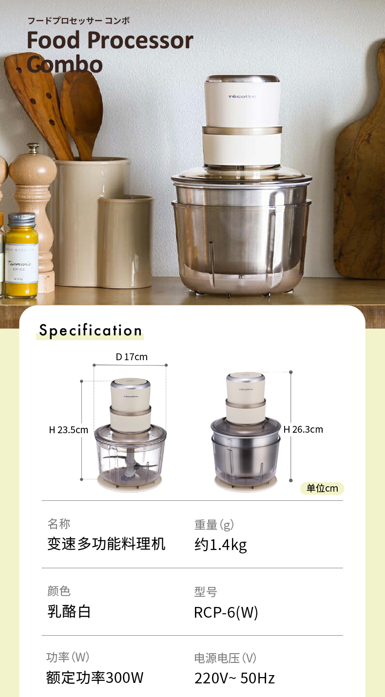 丽克特(recolte)RCP-6变速多功能料理机(单位:台) 象牙色