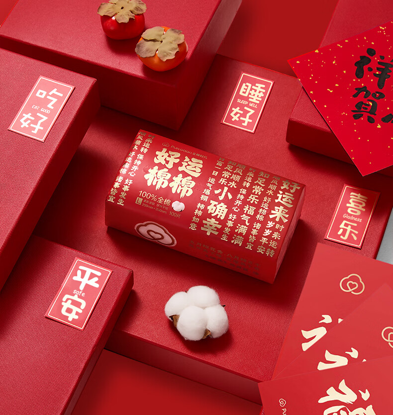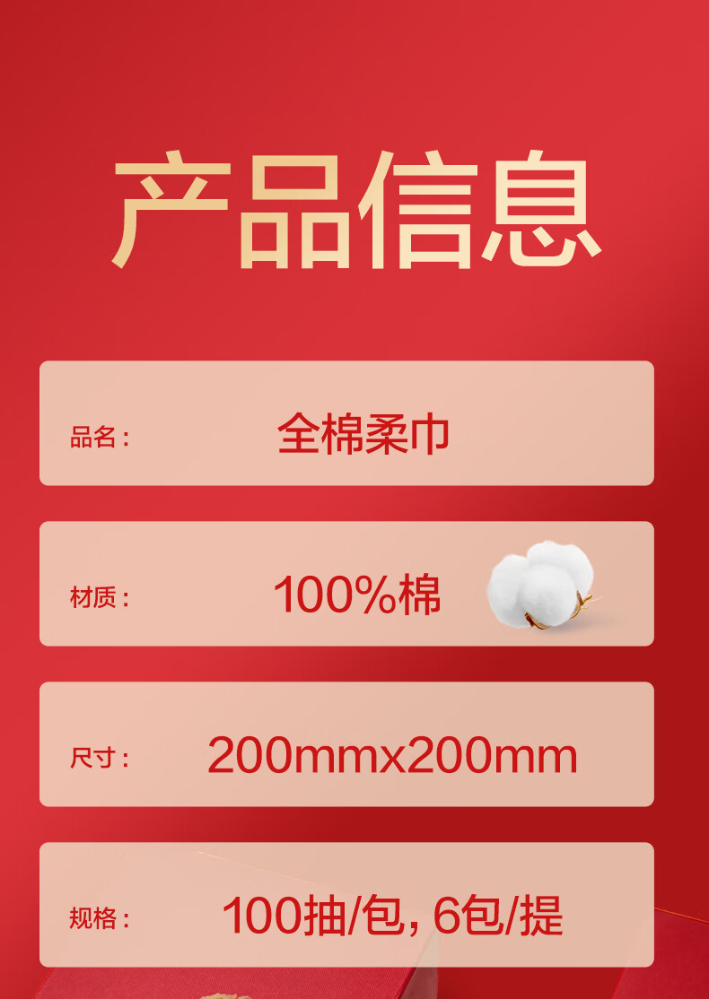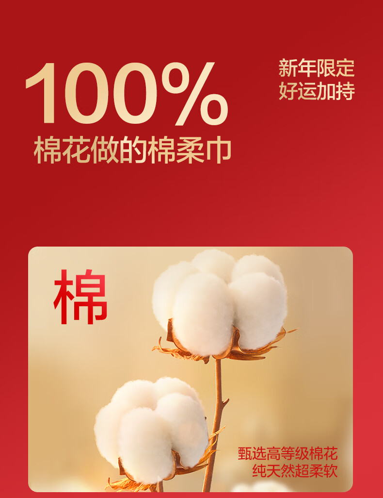 全棉时代新年红品棉柔巾200mm*200mm 100片/包 6包/袋PPJ24700064(单位:袋) 红色