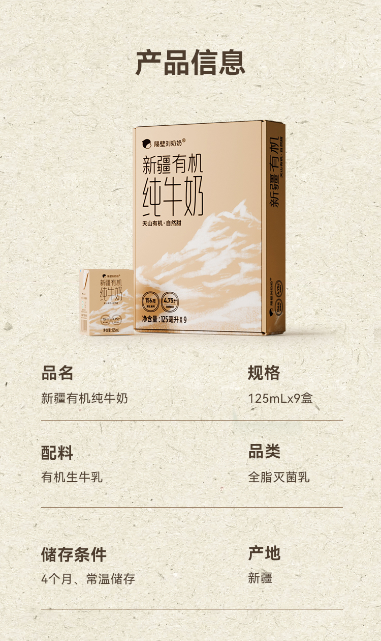 隔壁刘奶奶新疆有机奶125ml*9盒(单位:箱) 混色