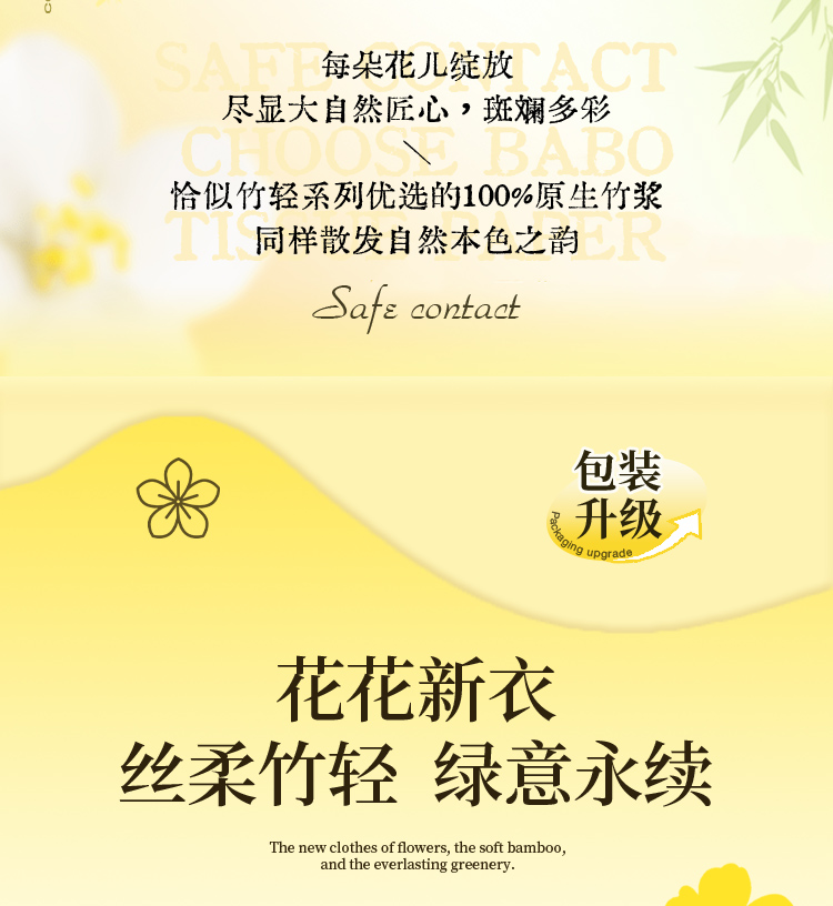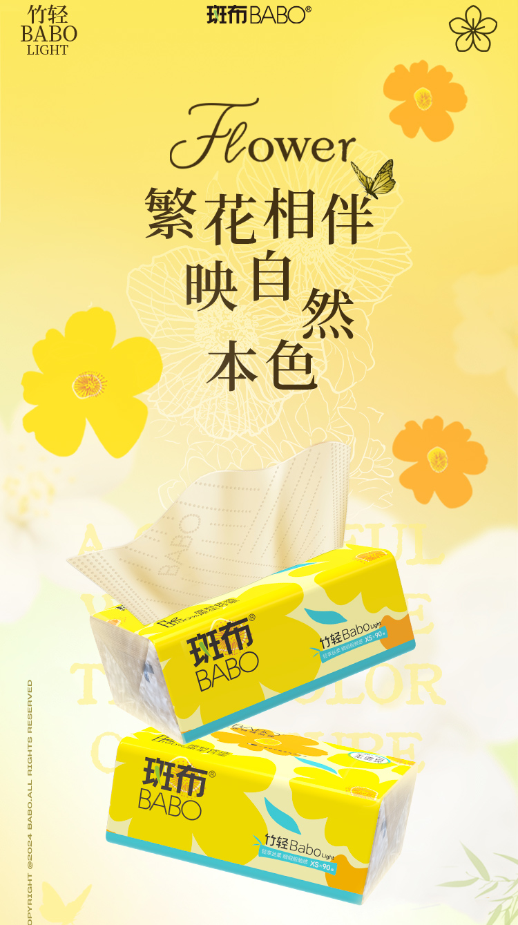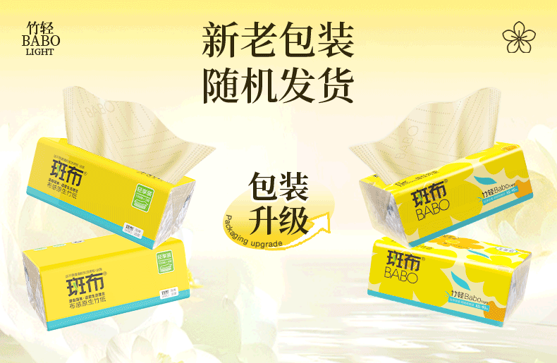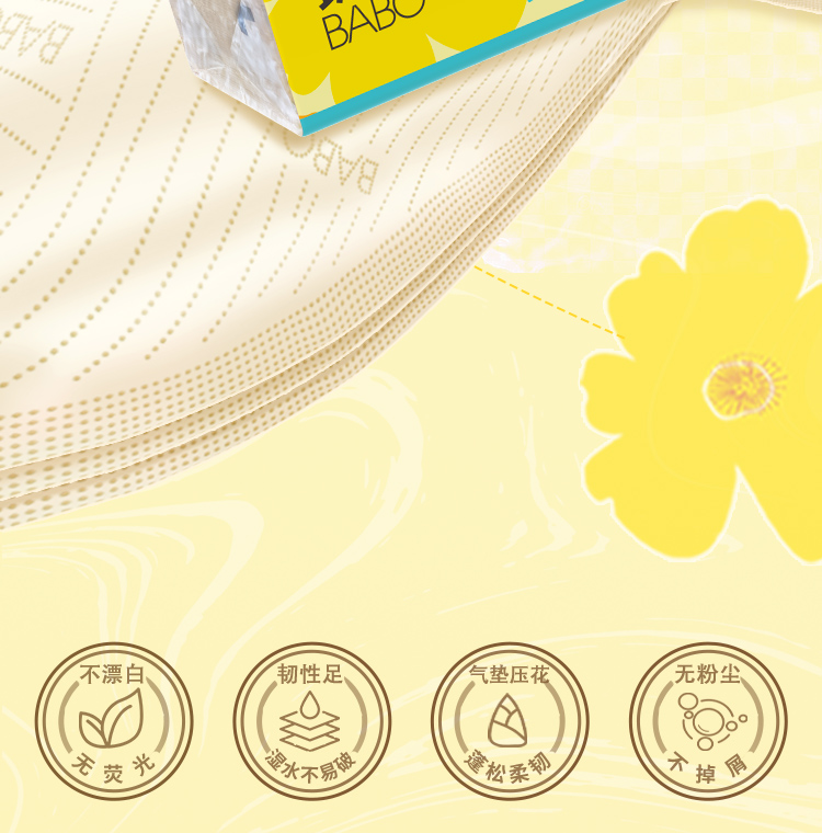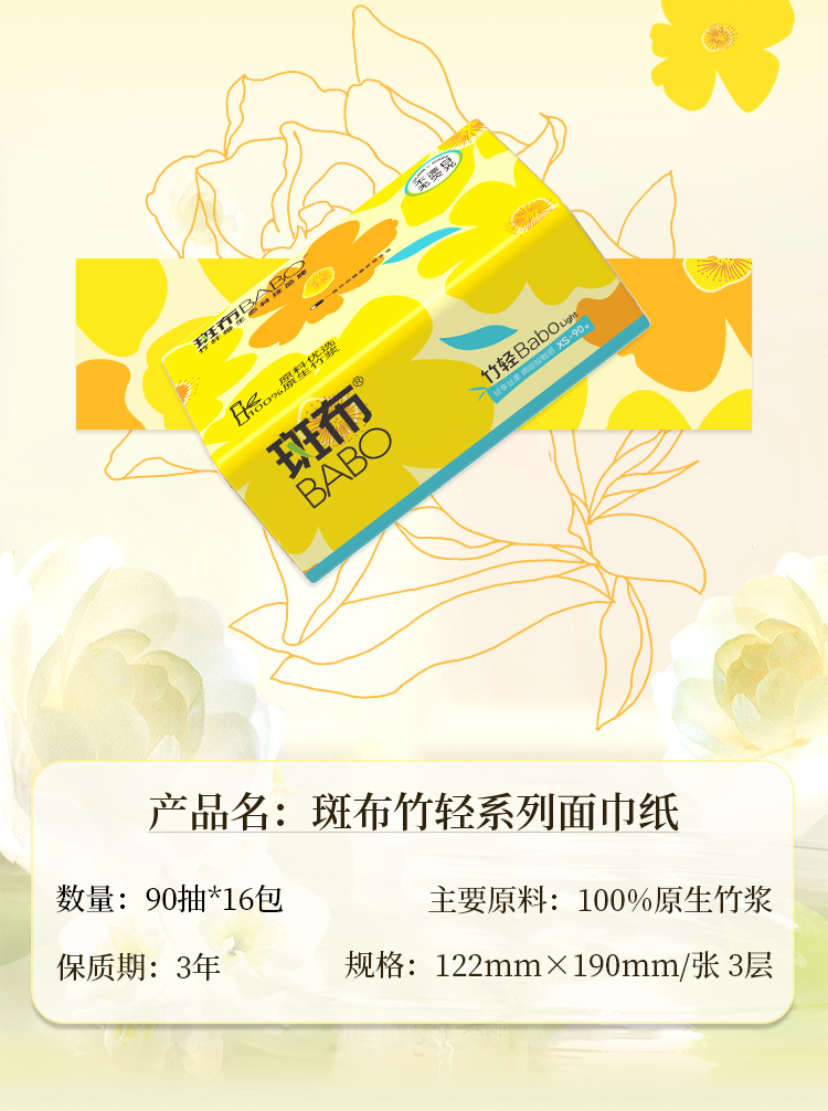 斑布(BABO)竹轻系列抽纸 原生竹浆 3层90抽16包 箱装DBZR90E16(单位:箱) 黄色