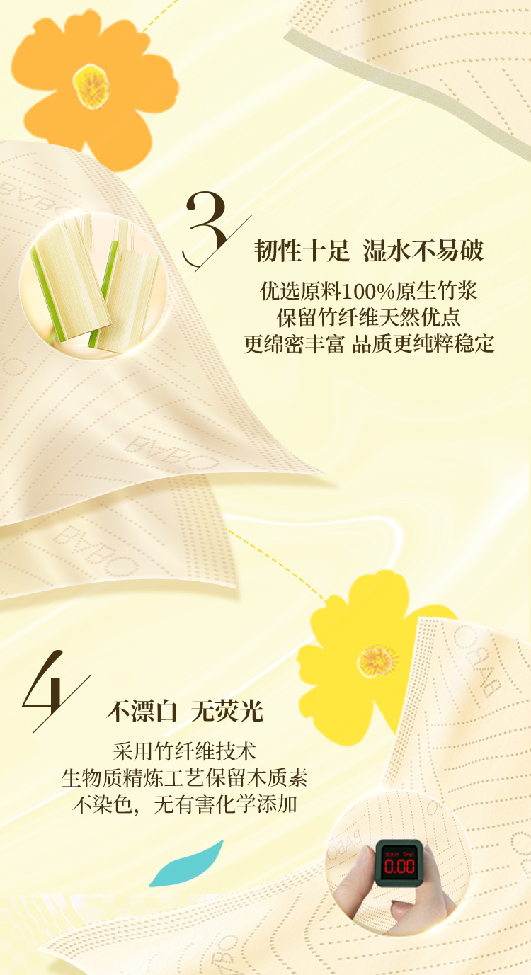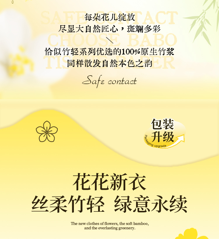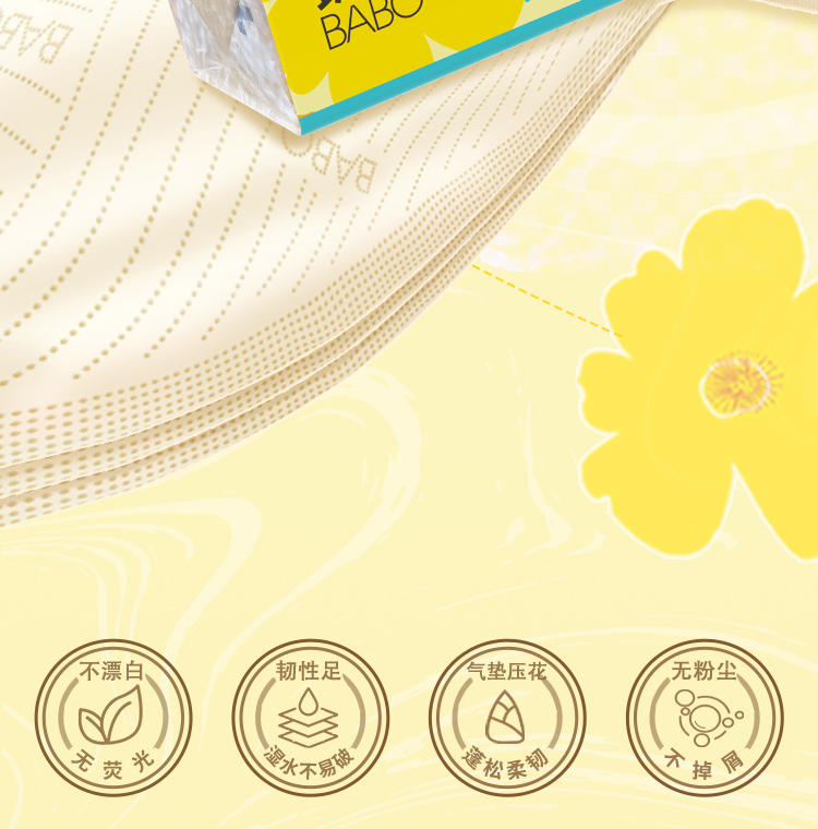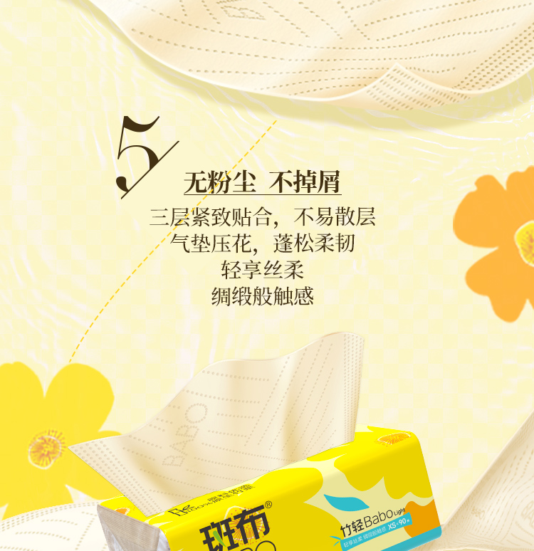 斑布(BABO)竹轻系列抽纸 原生竹浆3层90抽24包 箱装DBZR90E24(单位:箱) 黄色