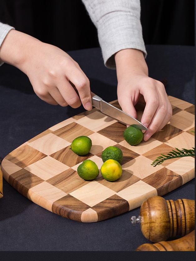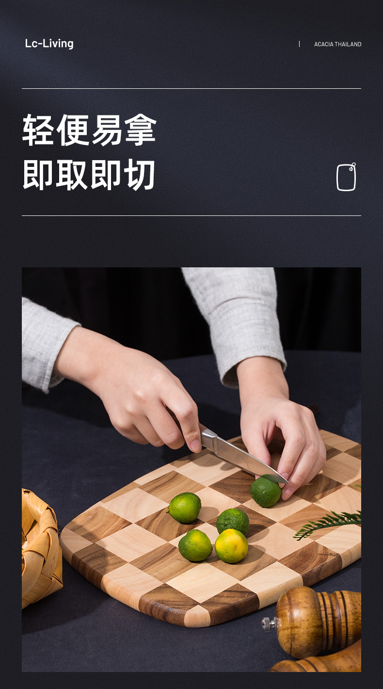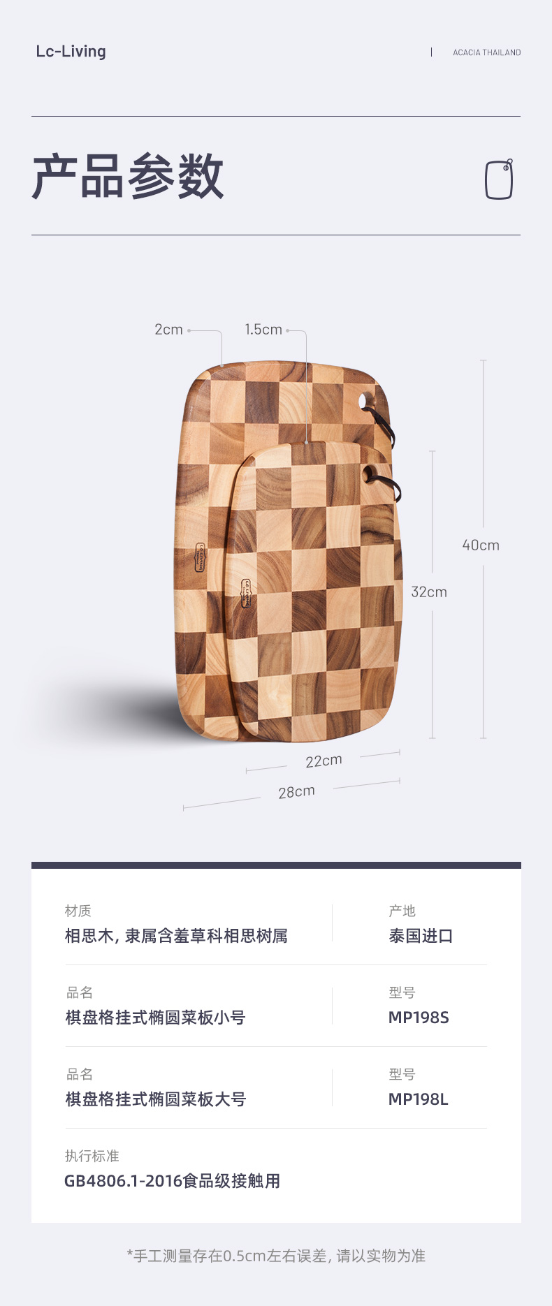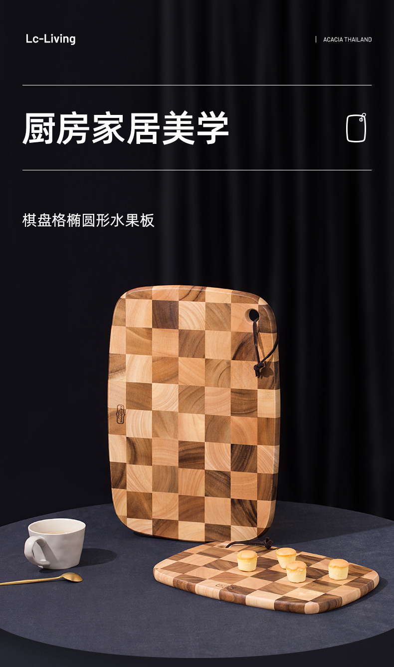 LC LIVING MP198L棋盘格挂式椭圆菜板大号40x28x2cm(30年树龄/皮绳提手)(单位:个) 原木色