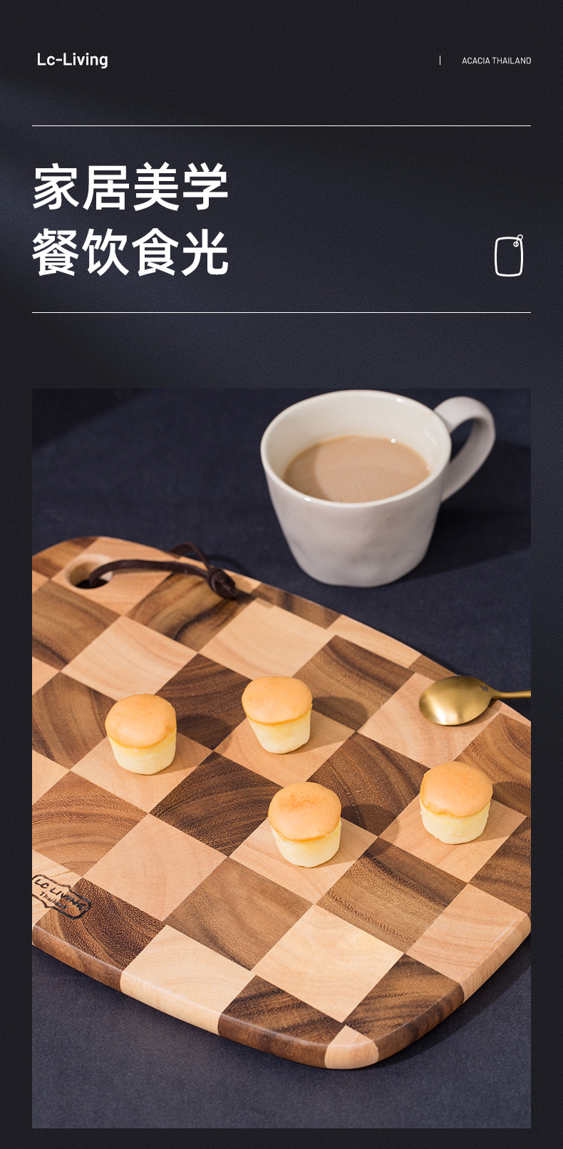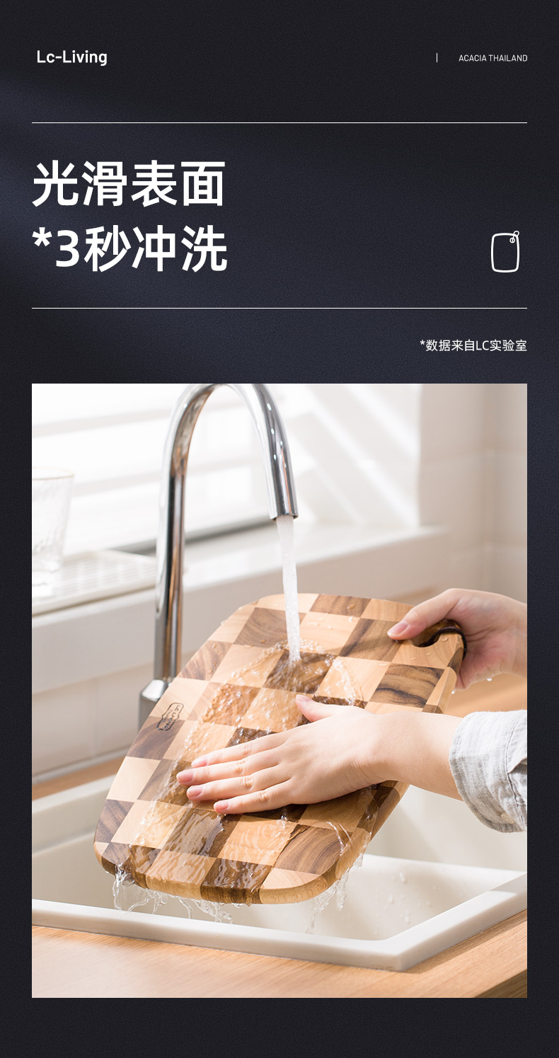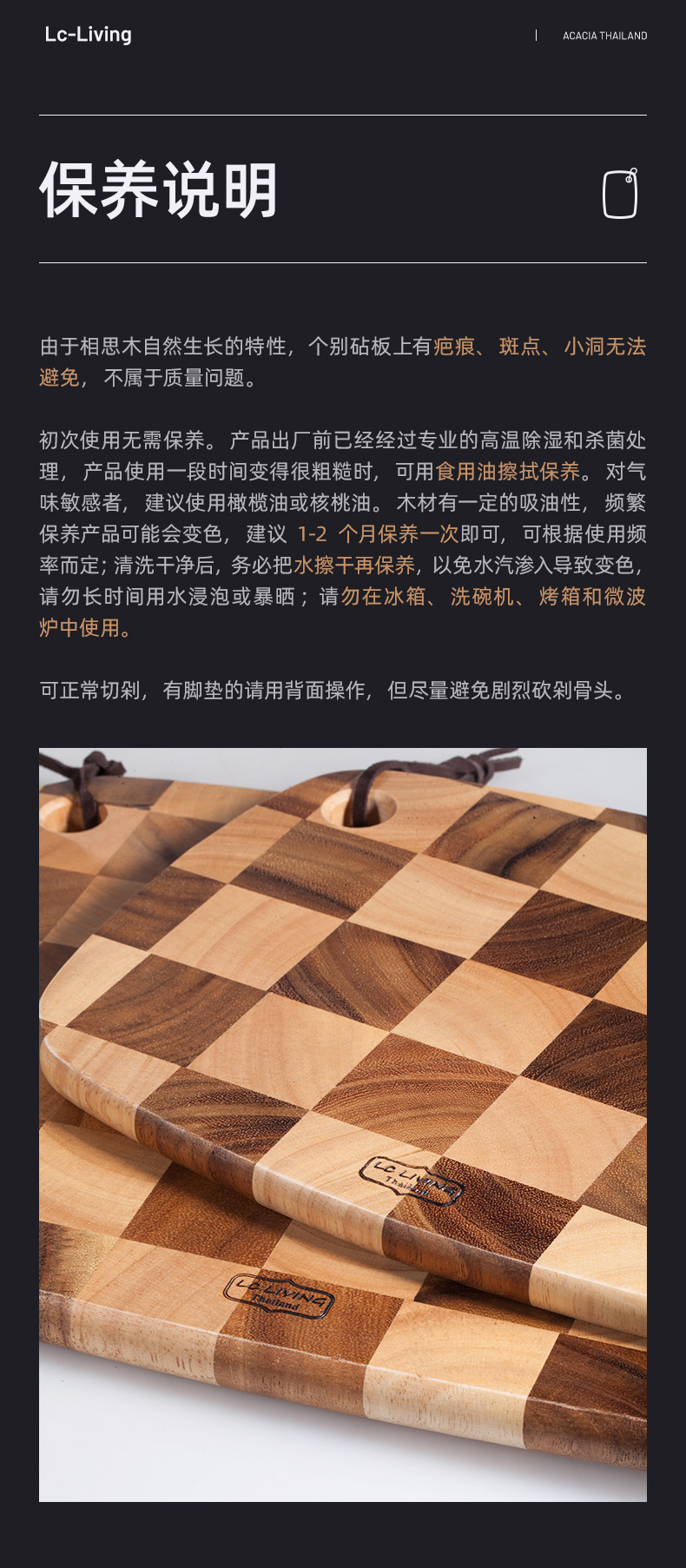 LC LIVING MP198L棋盘格挂式椭圆菜板大号40x28x2cm(30年树龄/皮绳提手)(单位:个) 原木色