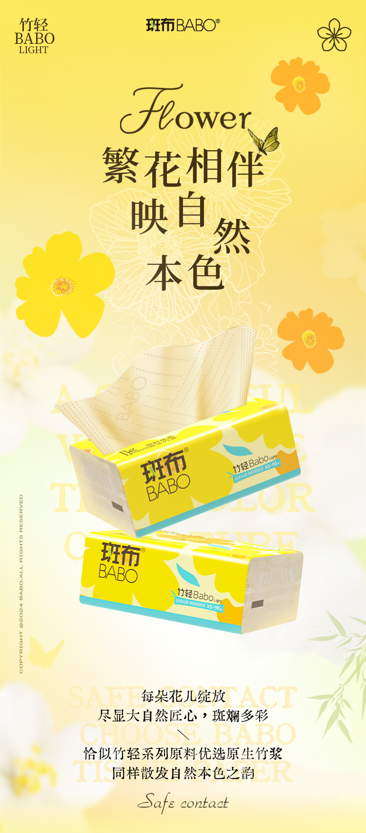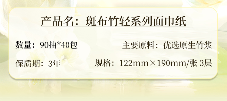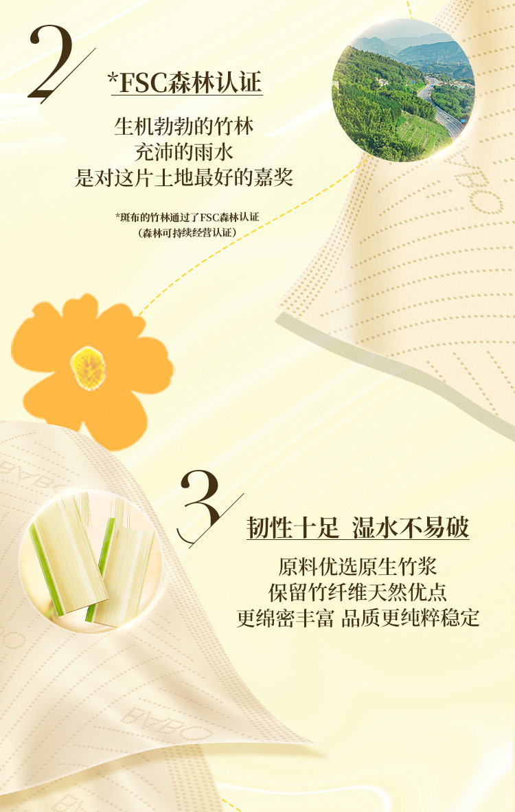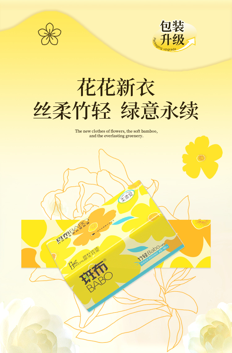 斑布(BABO)竹轻系列抽纸 原生竹浆 3层90抽40包 箱装DBZR90E40(单位:箱) 黄色