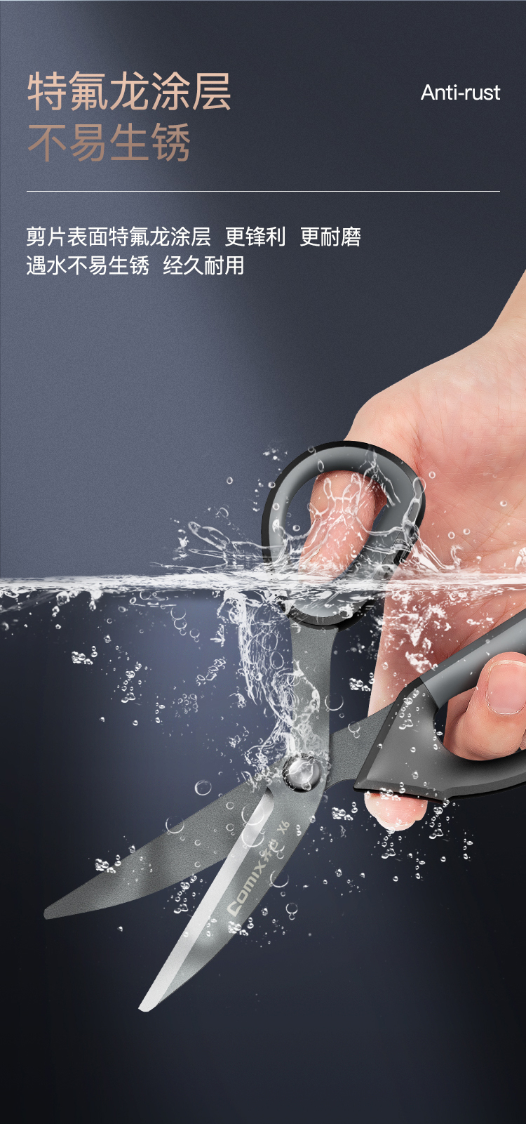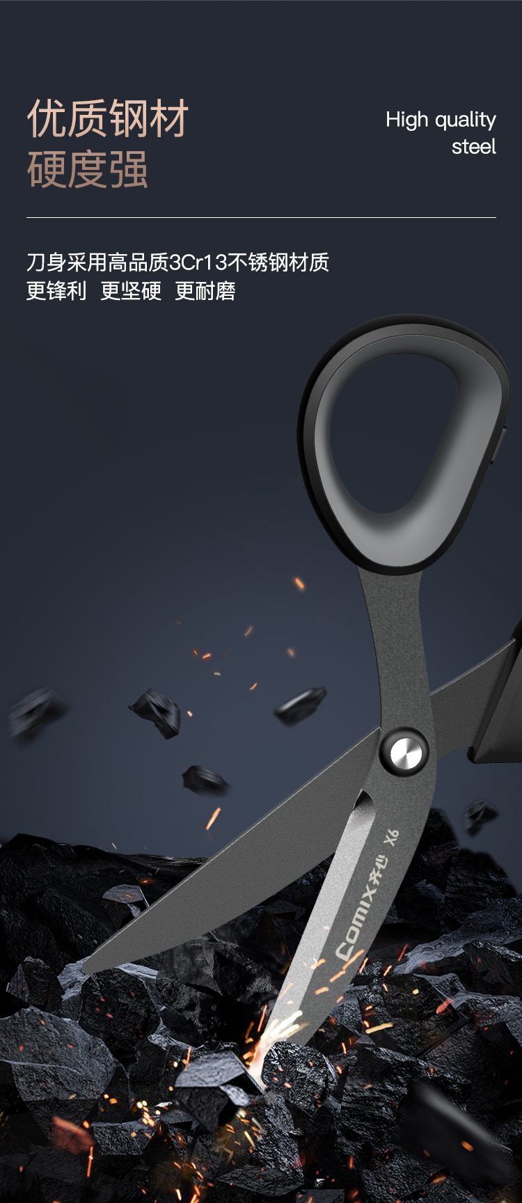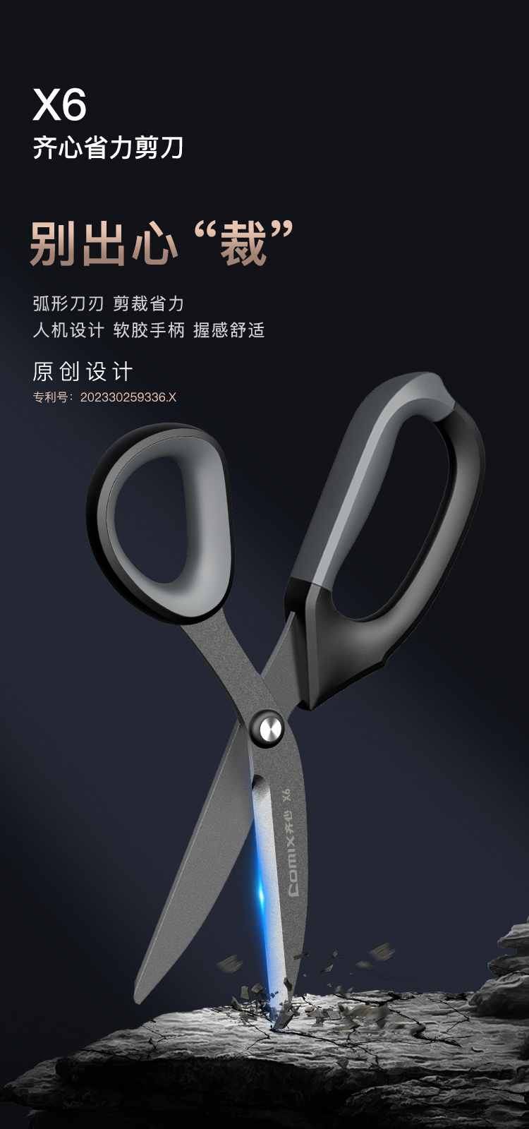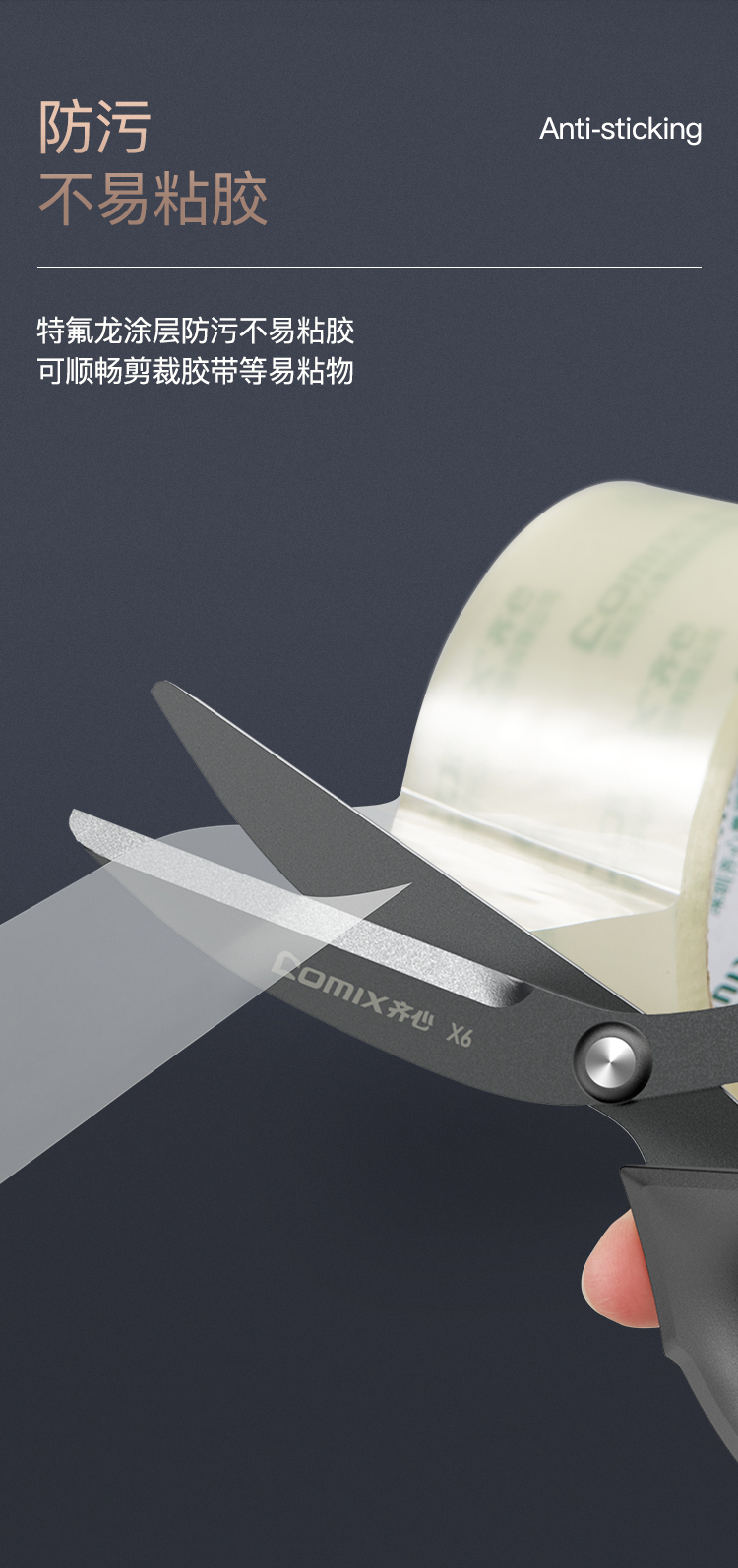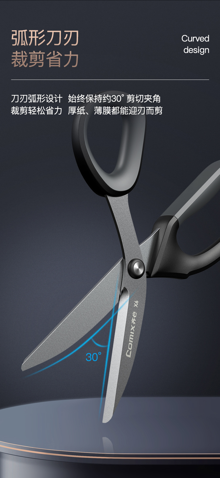 齐心(COMIX) X6 180cm 特氟龙省力剪刀 黑色(单位:把)