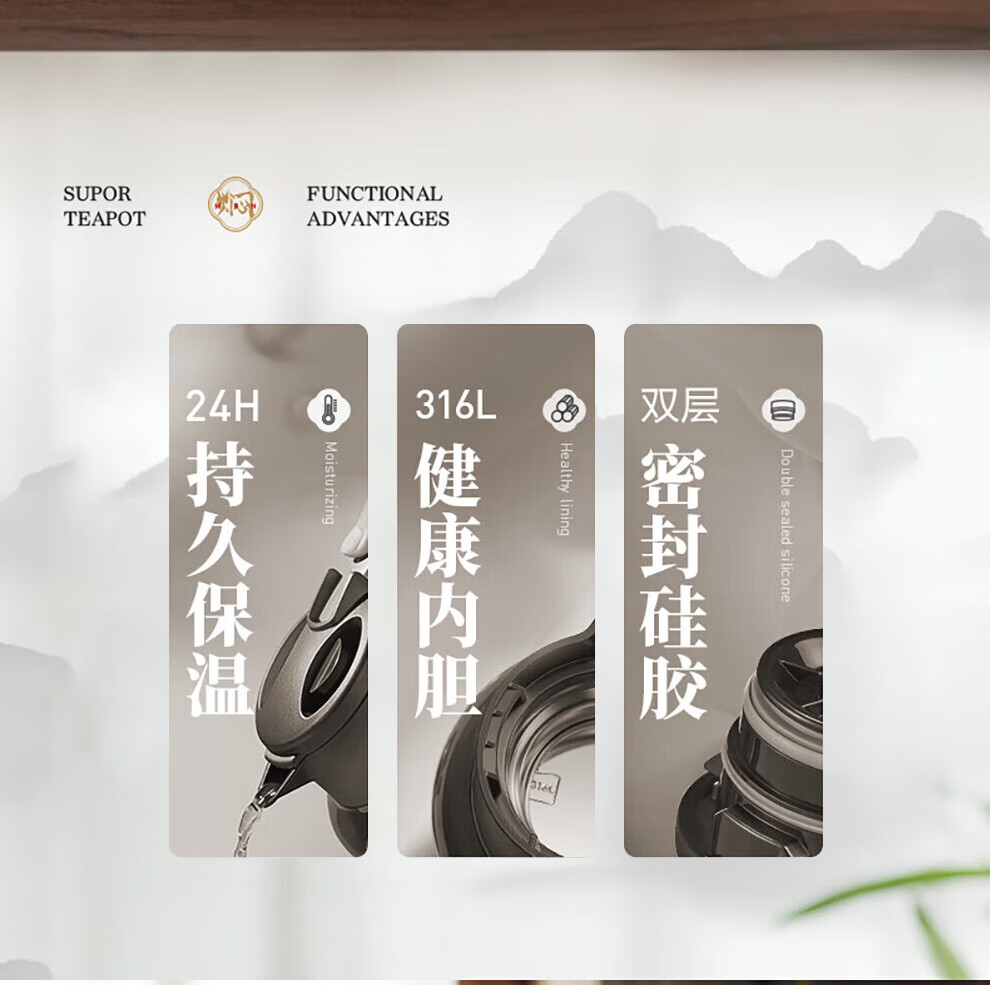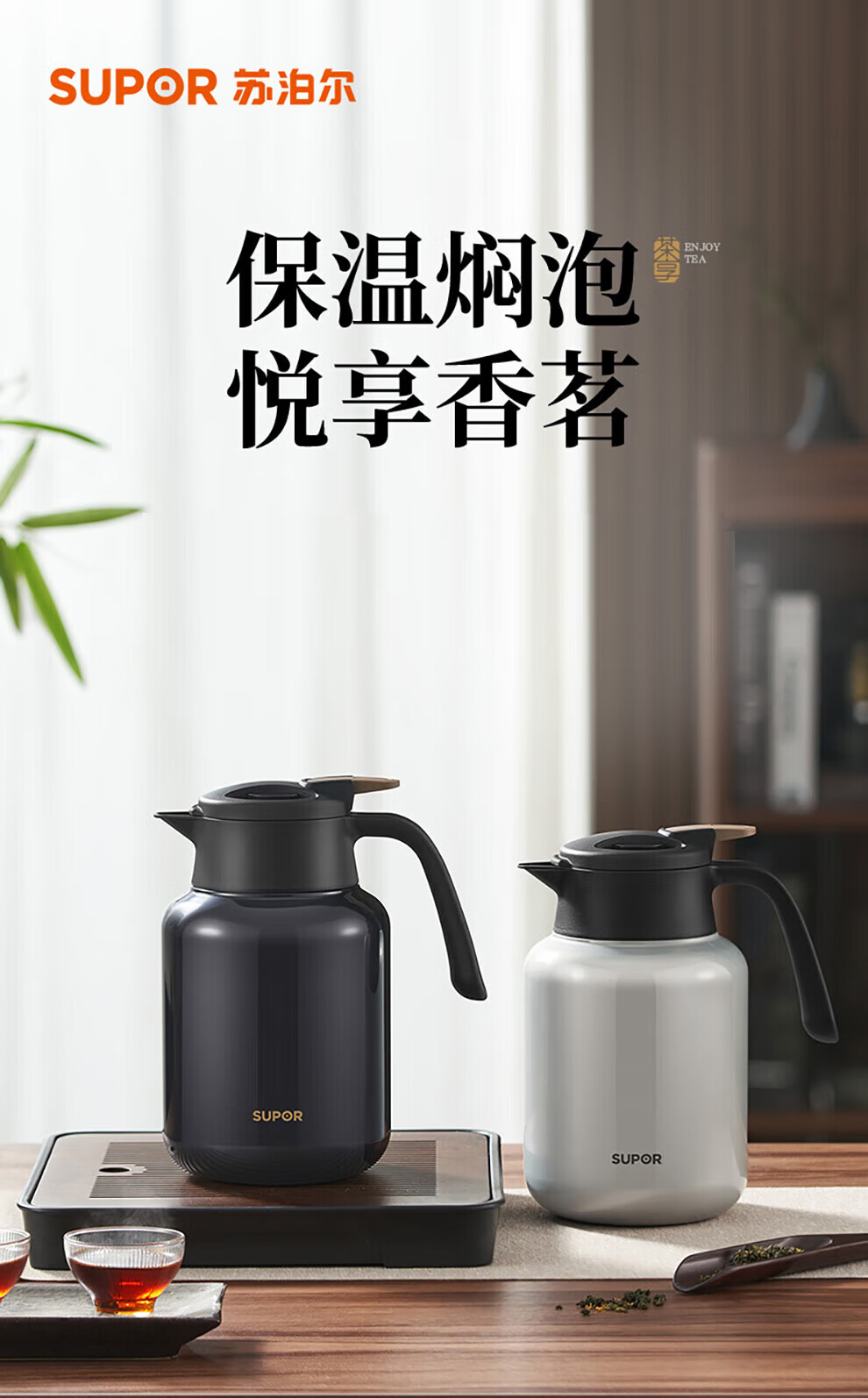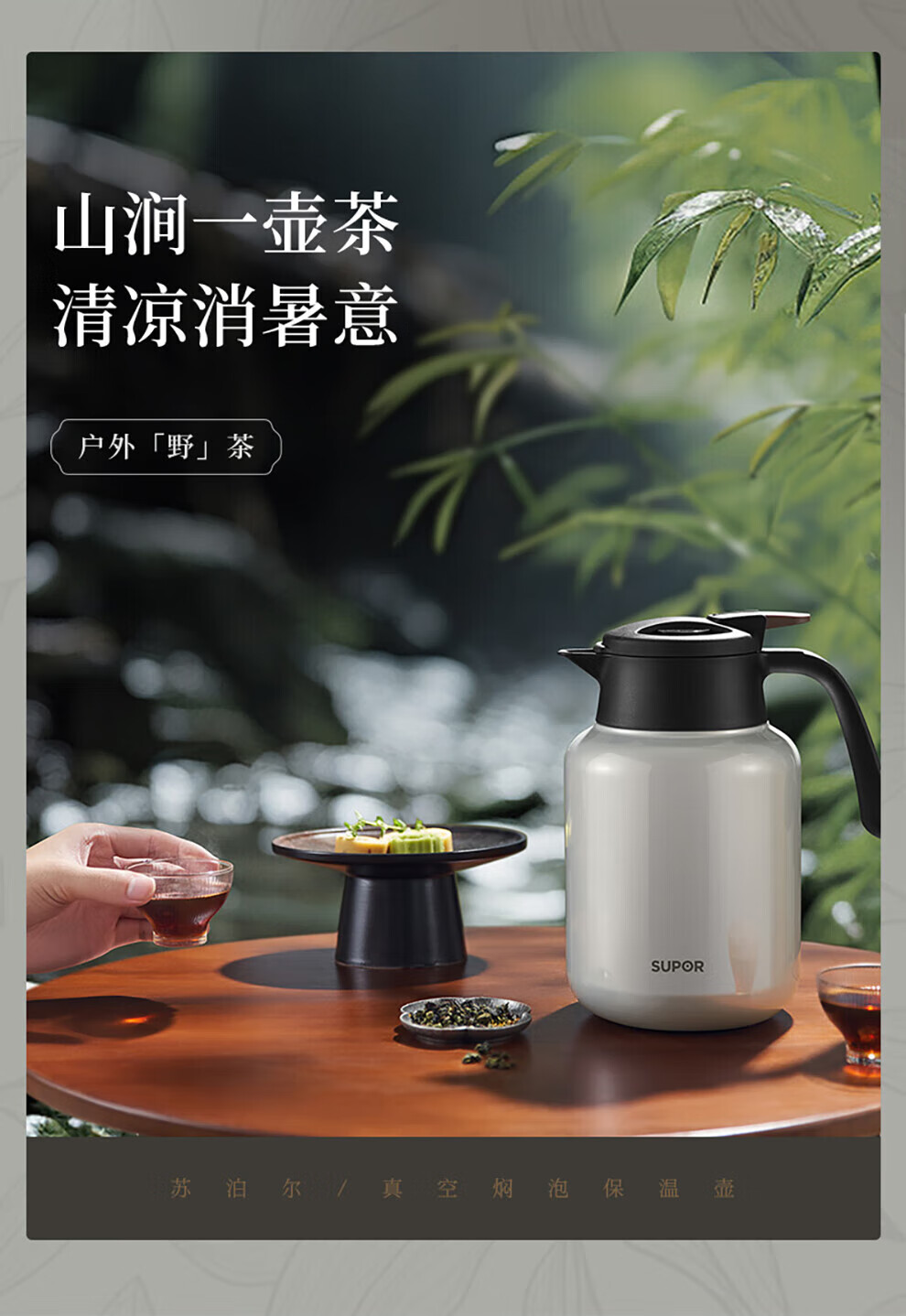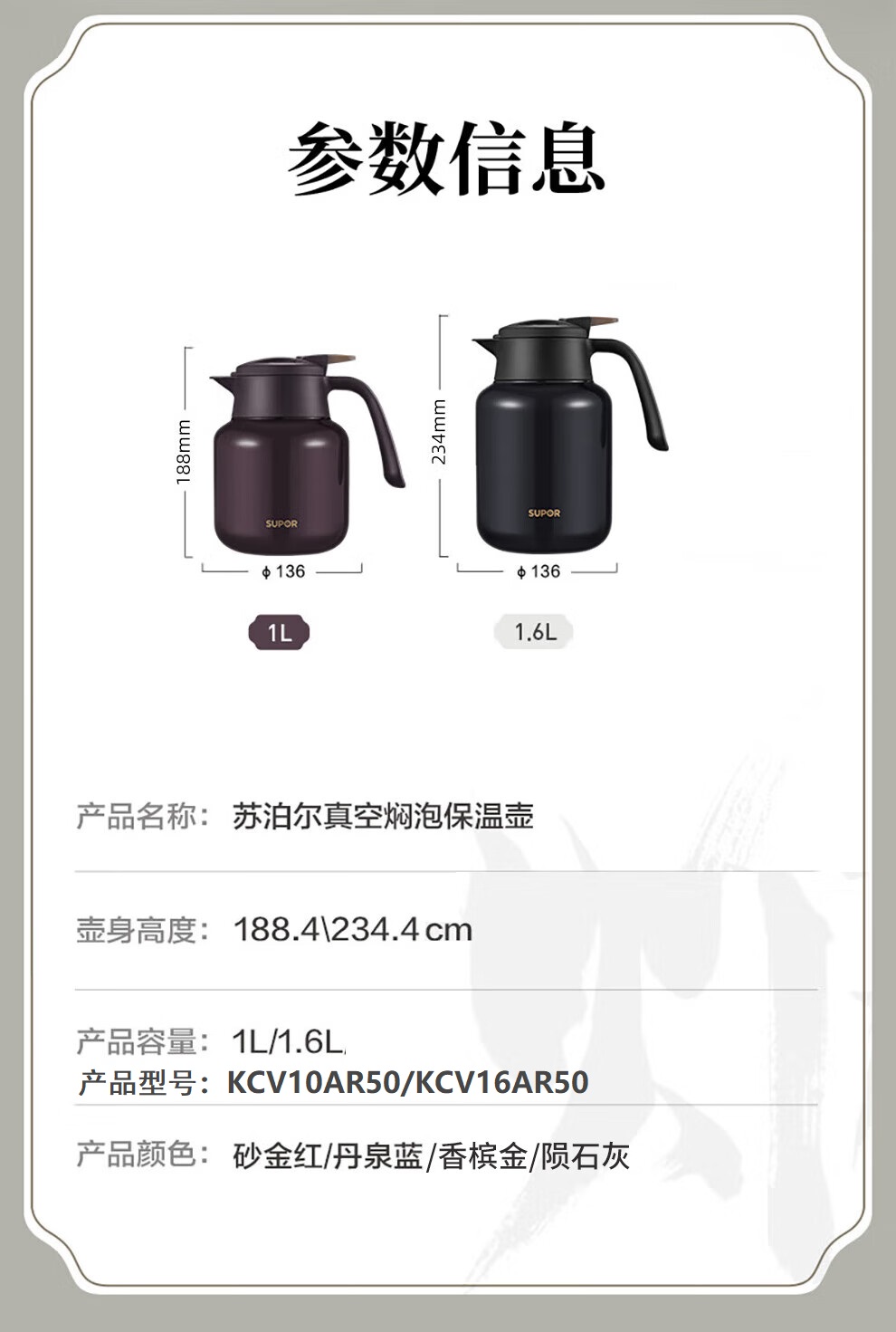 苏泊尔(SUPOR)真空焖泡保温壶 1.6L316不锈钢泡茶壶 KCV16AR50/个 丹泉蓝