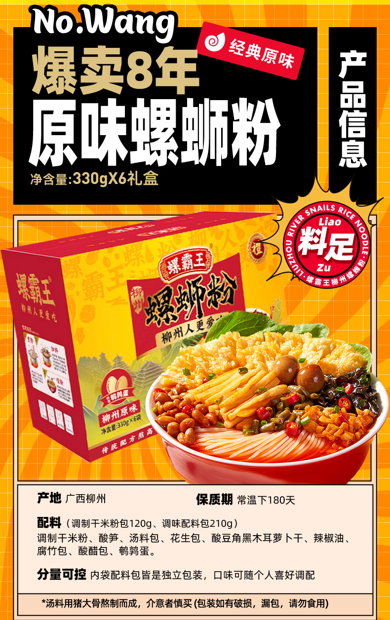 螺霸王原味螺蛳粉330g*6 单位:盒 香槟金