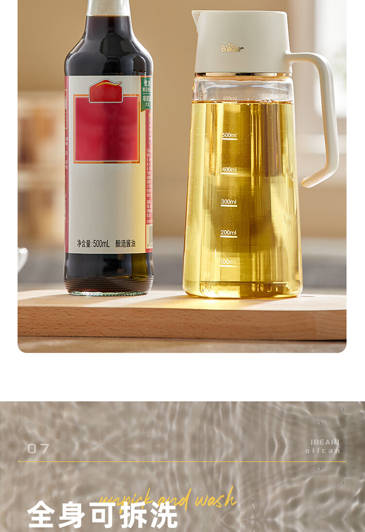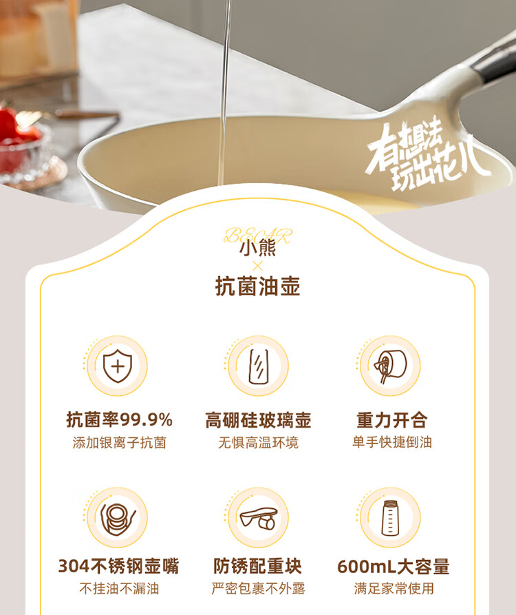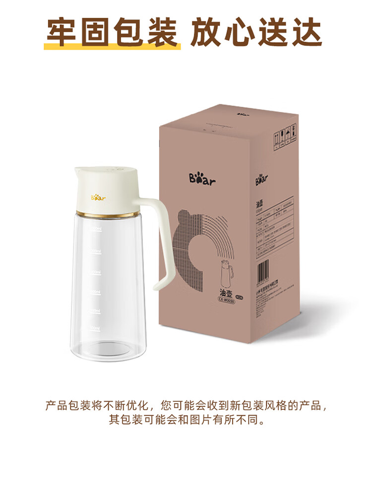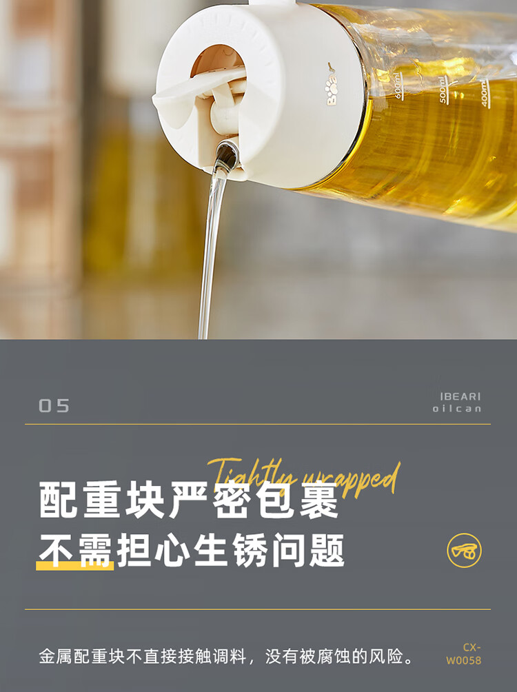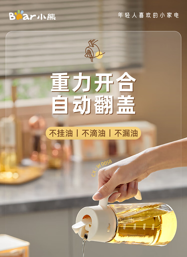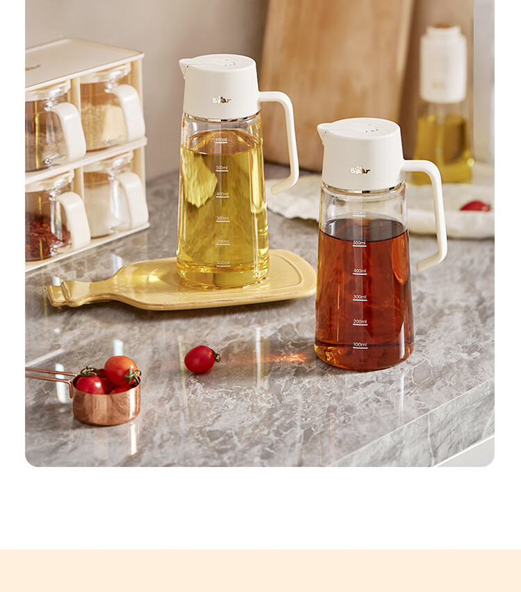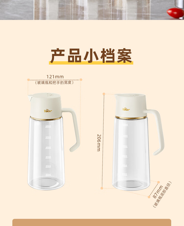 小熊伊万(BEAREWAN)油壶 抗菌玻璃油瓶600ml 自动开合不挂油CX-W0058(单位:个) 米白色