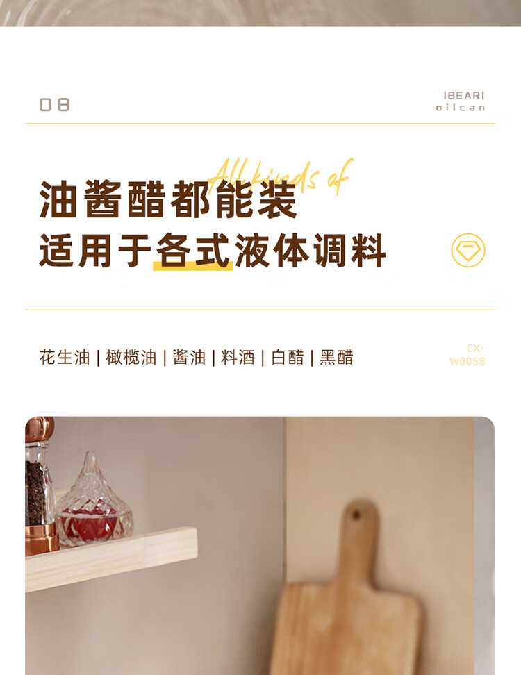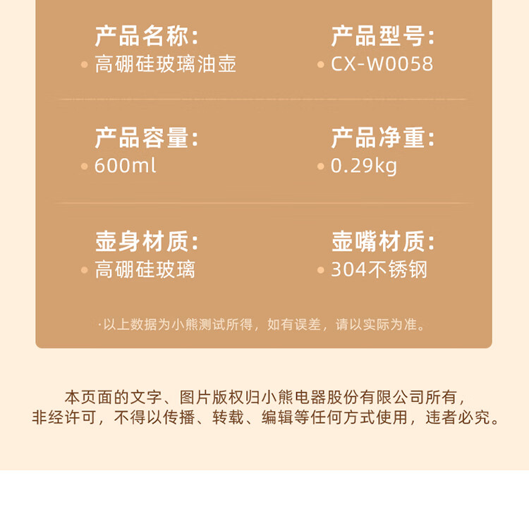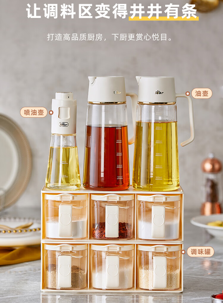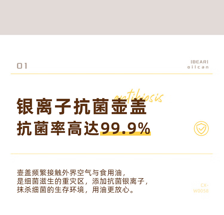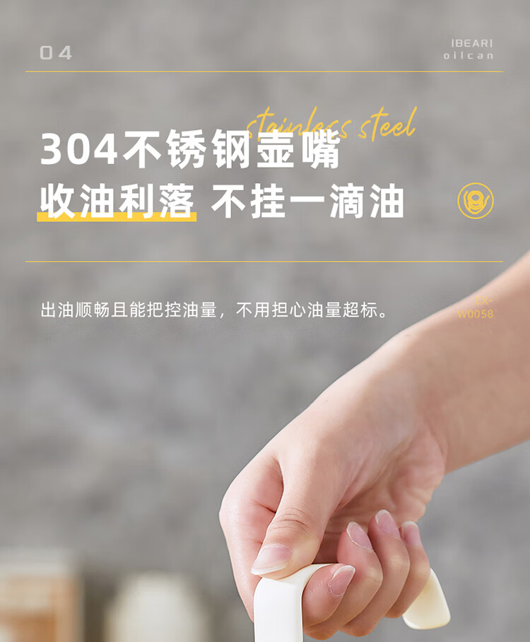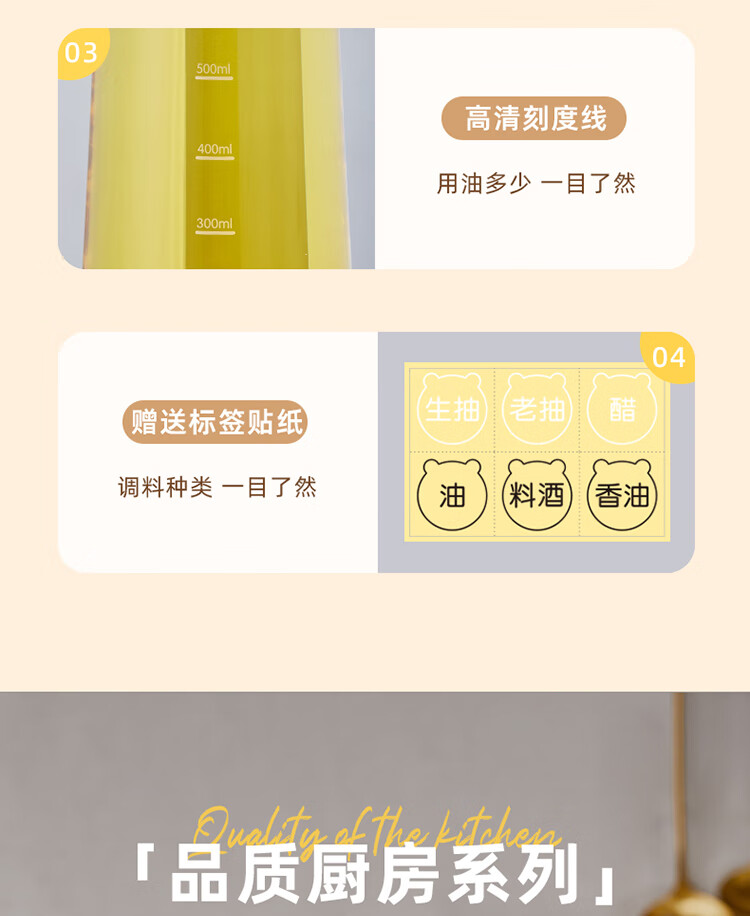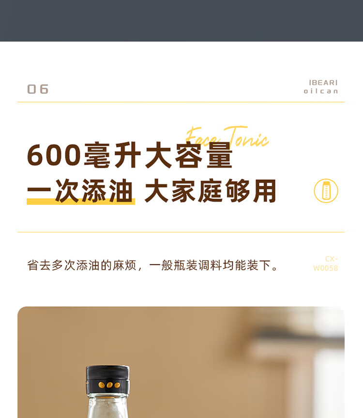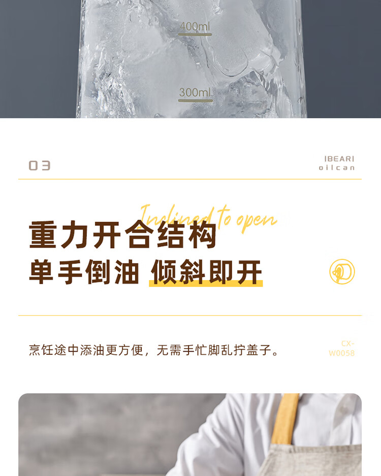 小熊伊万(BEAREWAN)油壶 抗菌玻璃油瓶600ml 自动开合不挂油CX-W0058(单位:个) 米白色