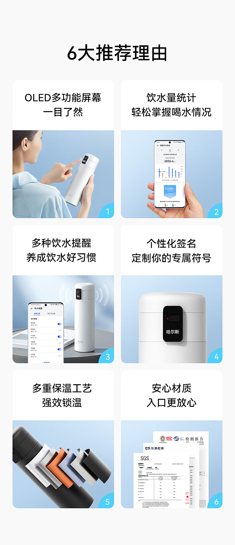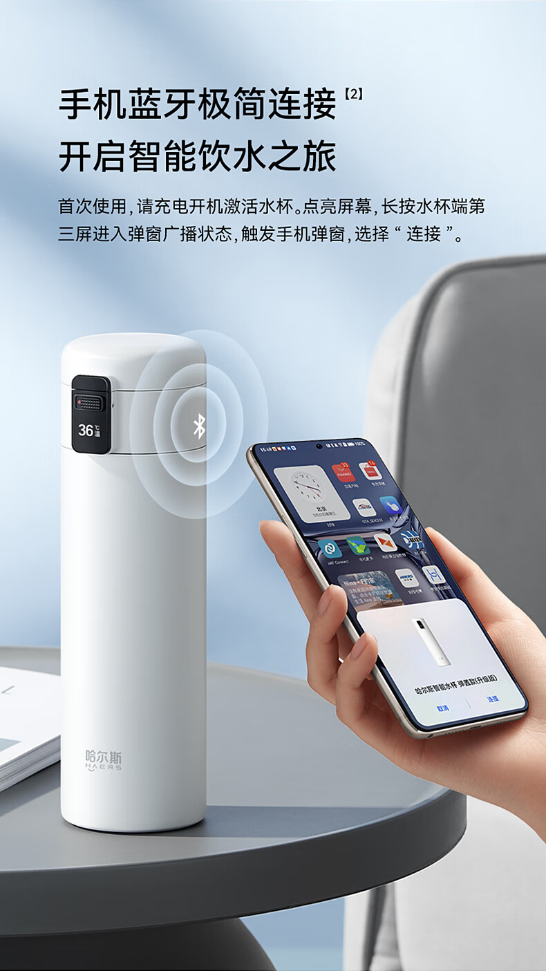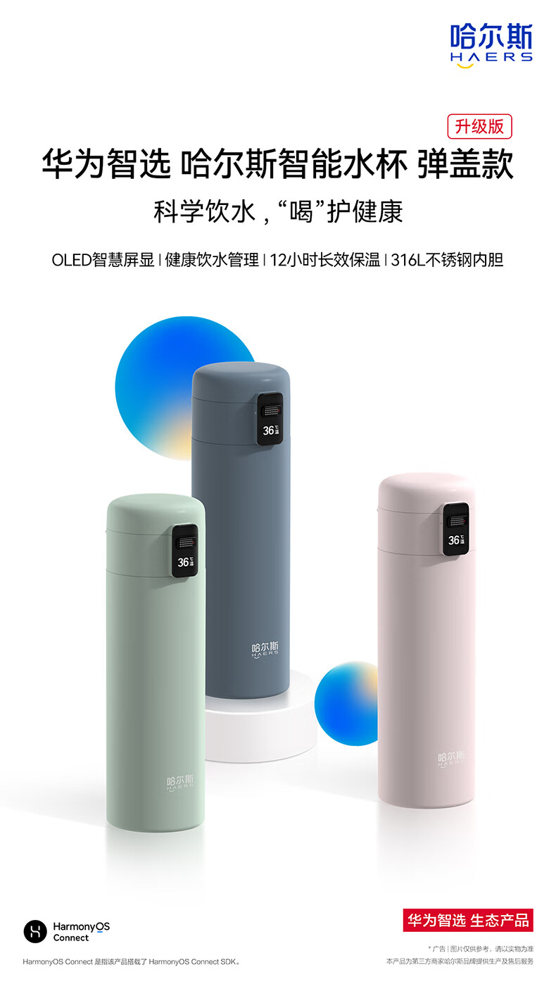 华为智选哈尔斯智能水杯 弹盖款(升级版) HDM-450-16商务蓝420ML 单位:个 蓝色