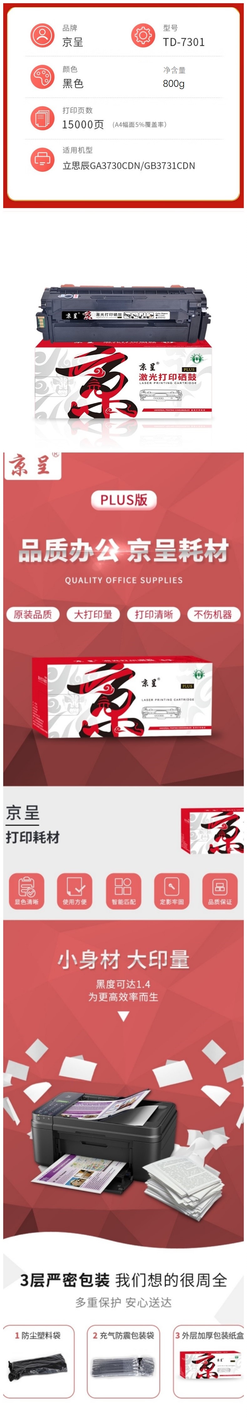 京呈 PLUS TD-7301 粉盒 适用立思辰GA3730CDN/GB3731CDN 计价单位:支 黑色