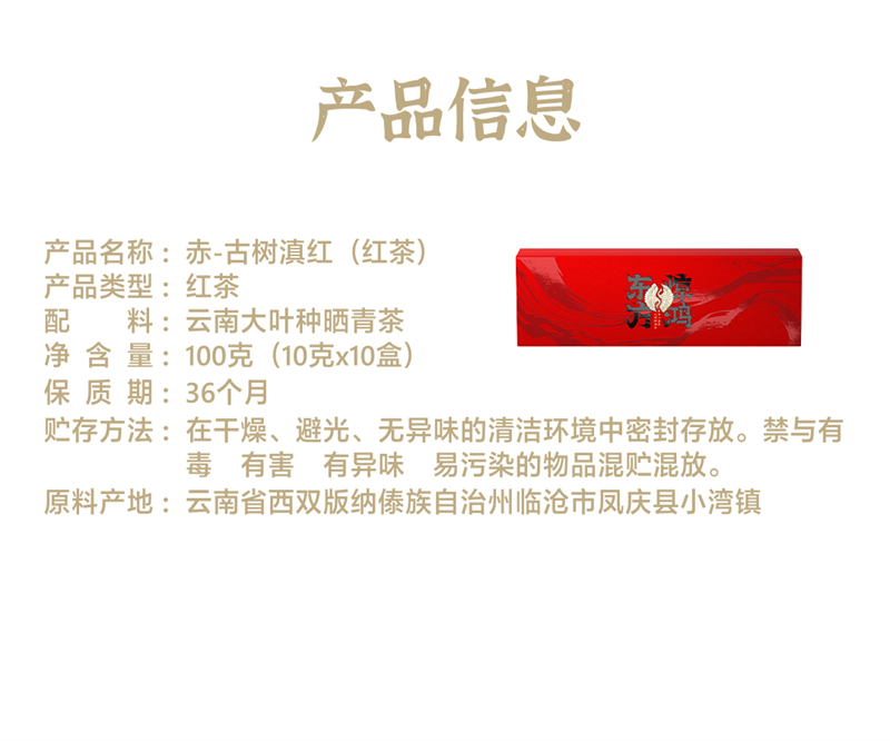 御福年东方惊鸿-古树 滇红茶叶10g*10 红色