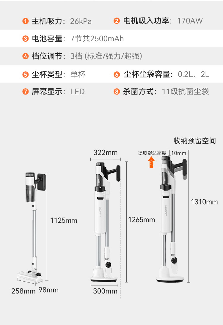 UWANT自集尘双杯吸尘器 V300(单位:台) 白色
