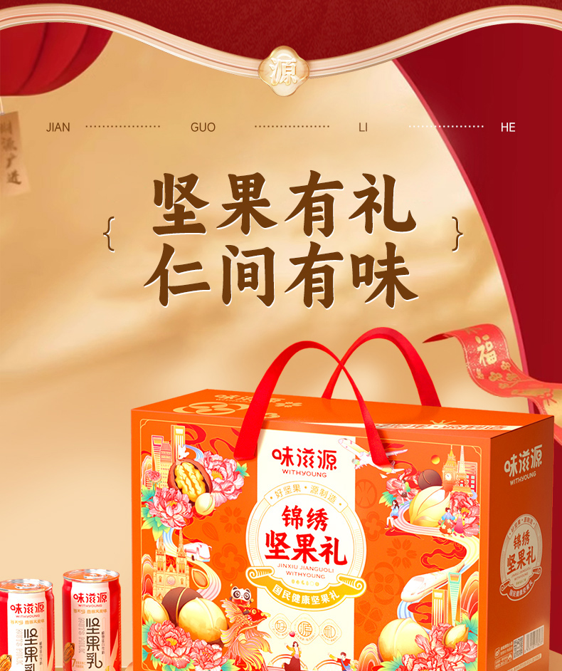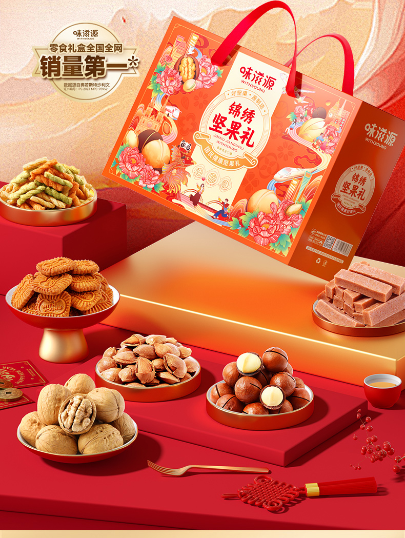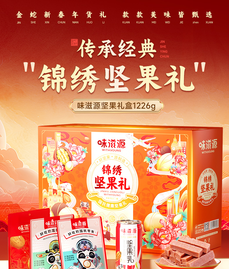 味滋源 锦绣坚果休闲食品礼盒 1226g(单位:盒) 橙色
