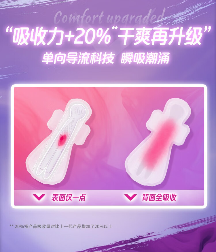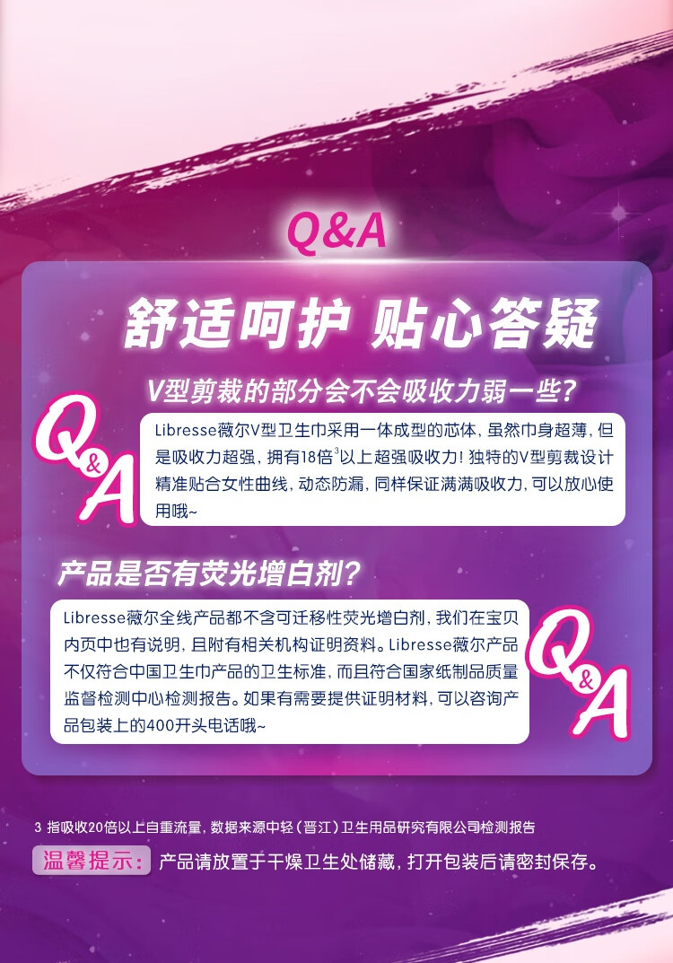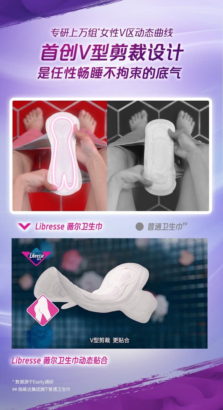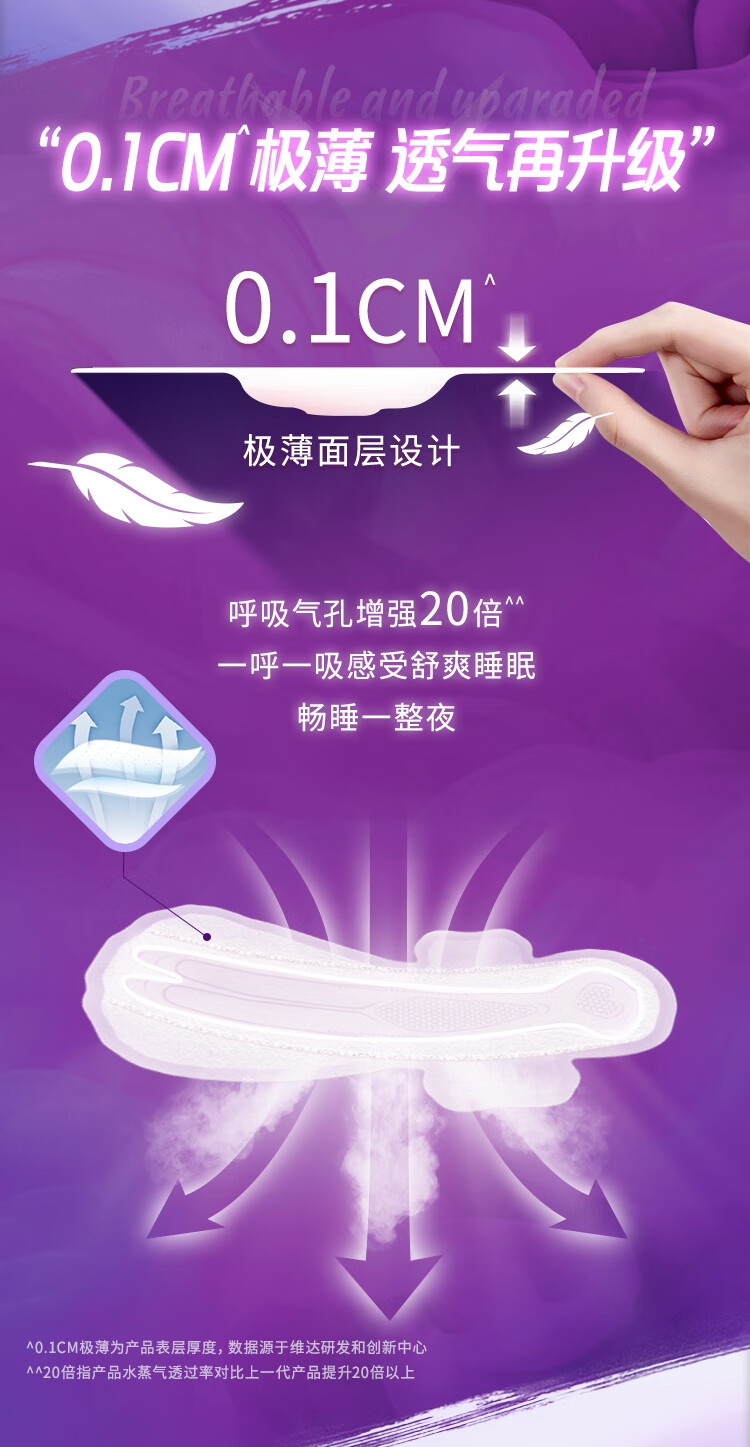 薇尔卫生巾姨妈巾 夜用卫生巾V感系列420mm超强吸收不侧漏棉柔亲肤6片(单位:包) 佳人粉