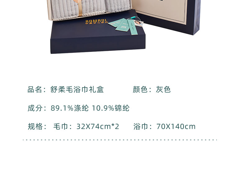 罗兰罗兰(ROMROL)舒柔毛浴巾礼盒(单位:套) 灰色