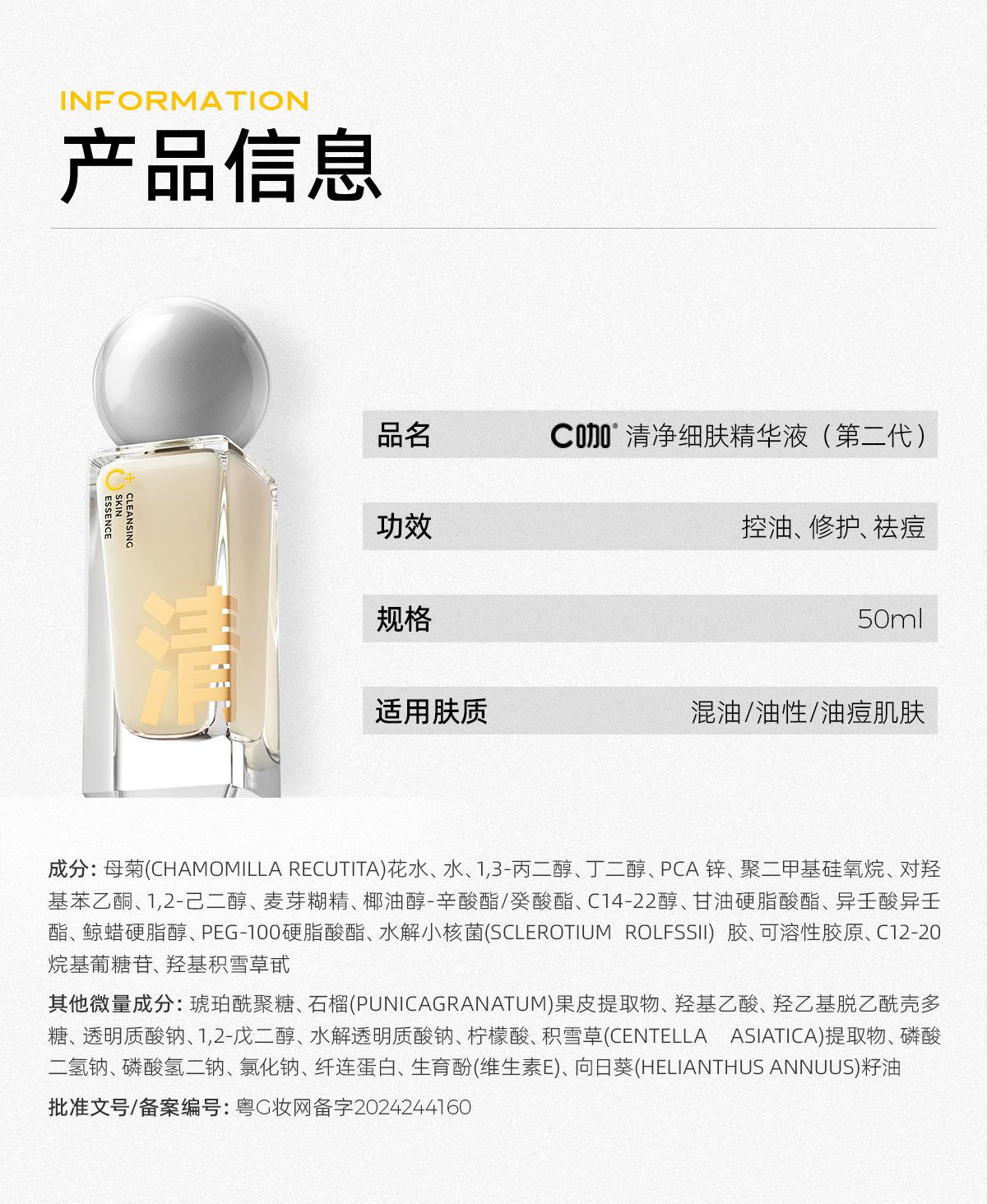C咖清净细肤精华液50ml(单位:瓶) 象牙色