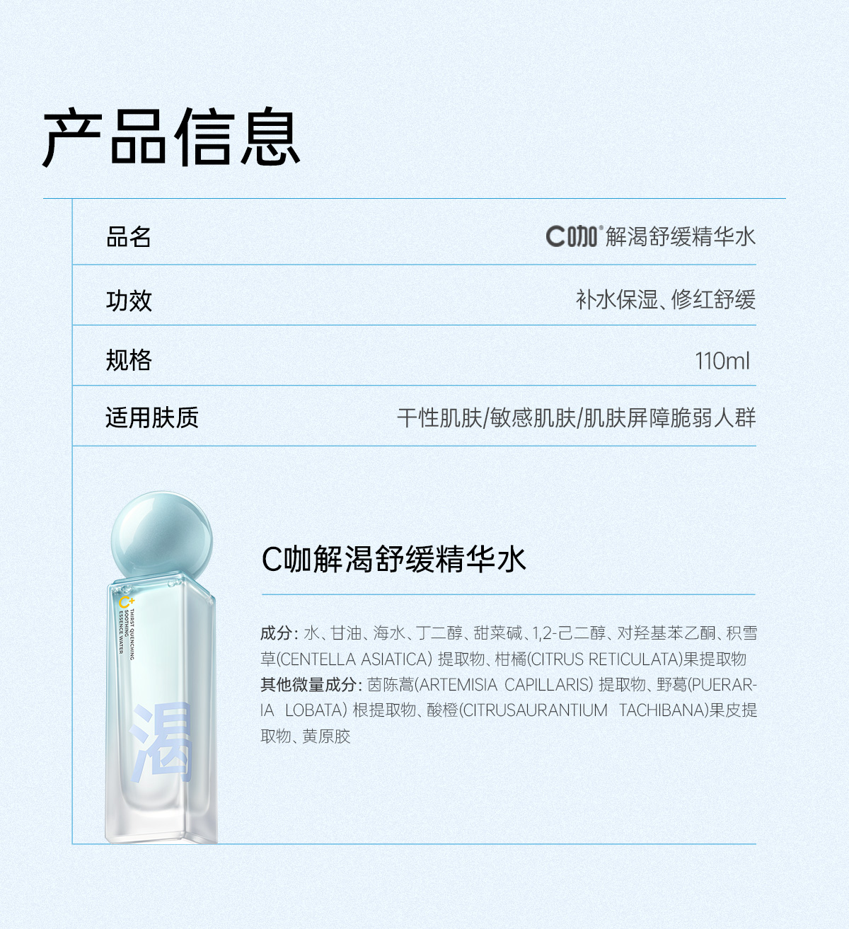 C咖解渴舒缓精华水110ml(单位:瓶) 天蓝色