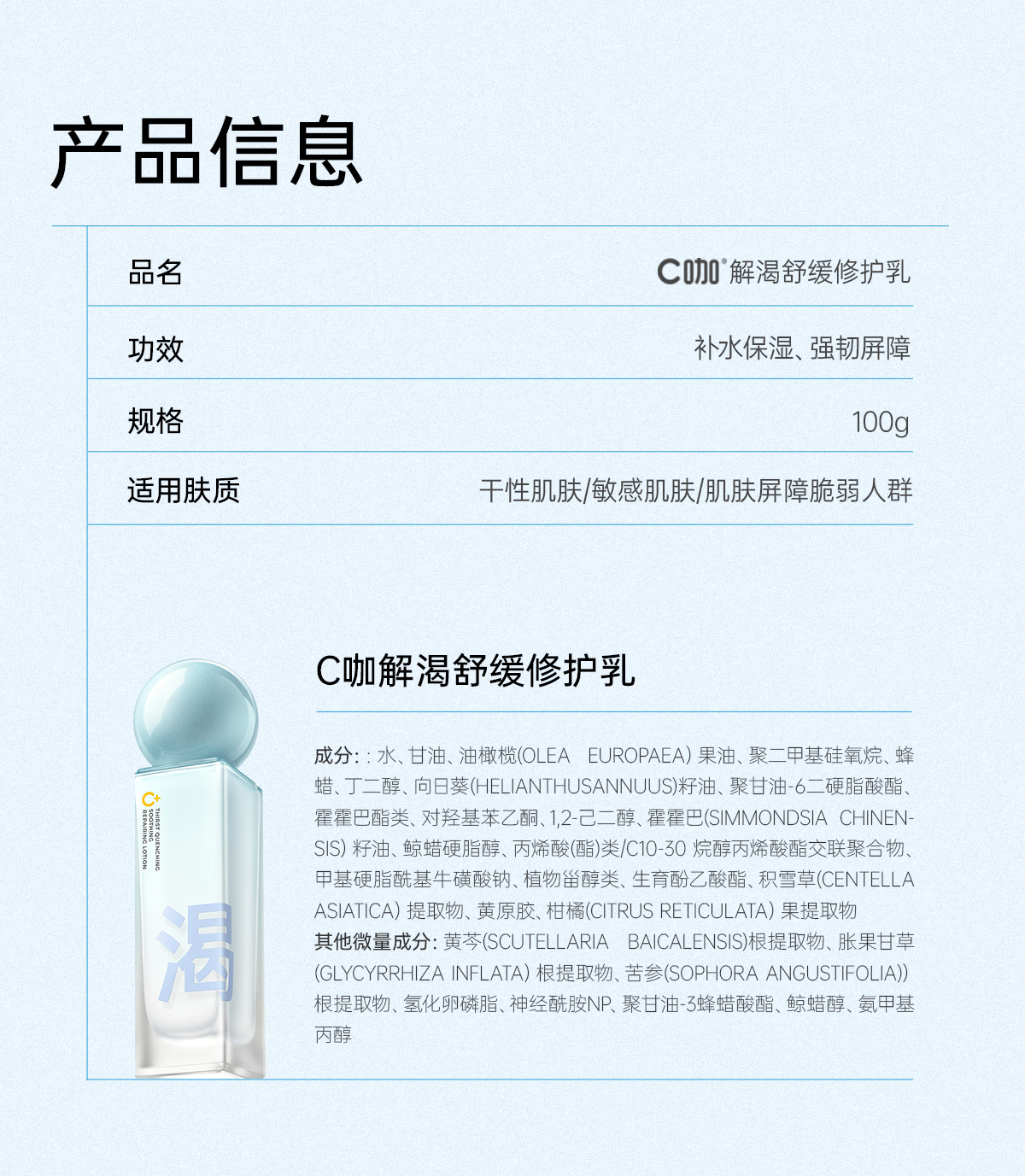 C咖解渴舒缓修护乳100ml(单位:瓶) 天蓝色
