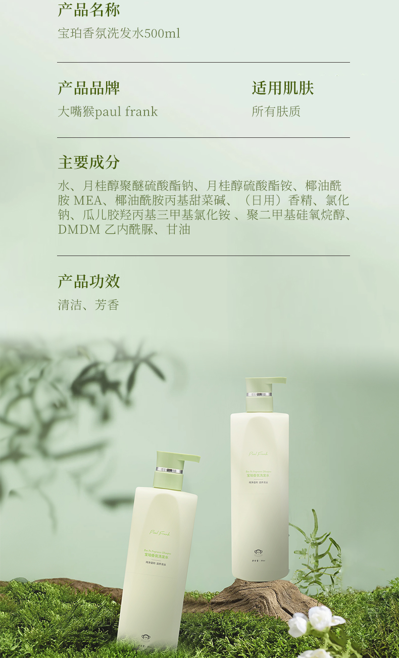 大嘴猴(Paul Frank)宝珀香氛洗发水 500ml(单位:瓶) 象牙色